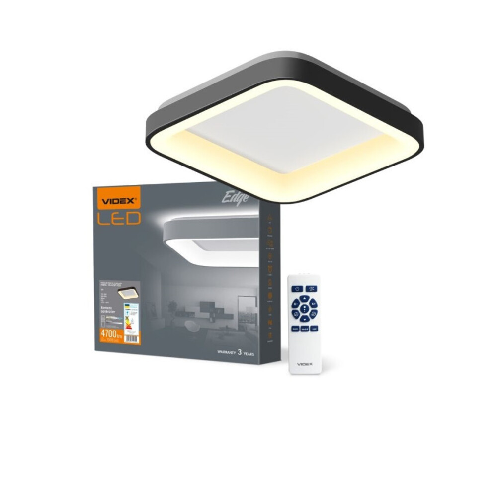 Videx Led Edge 72 W-os ø450mm fekete négyzet alakú LED távirányítós mennyezeti lámpa, Bekapcsolt üzemmódú energiafogyasztás (Pon): 72 W A lámpatest fényárama: 4700 lumen A beépített fényforrás hasznos fényárama (Φuse): 7500 lumen Fényforrás vagy azt tartalmazó termék: Tartalmazó termék A beépített fényforrás, ledmasterb2b