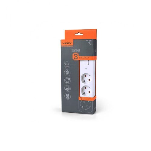Videx Oncord fehér színű 3-as professzionális hosszabbító kapcsolóval 3m-es kábellel
