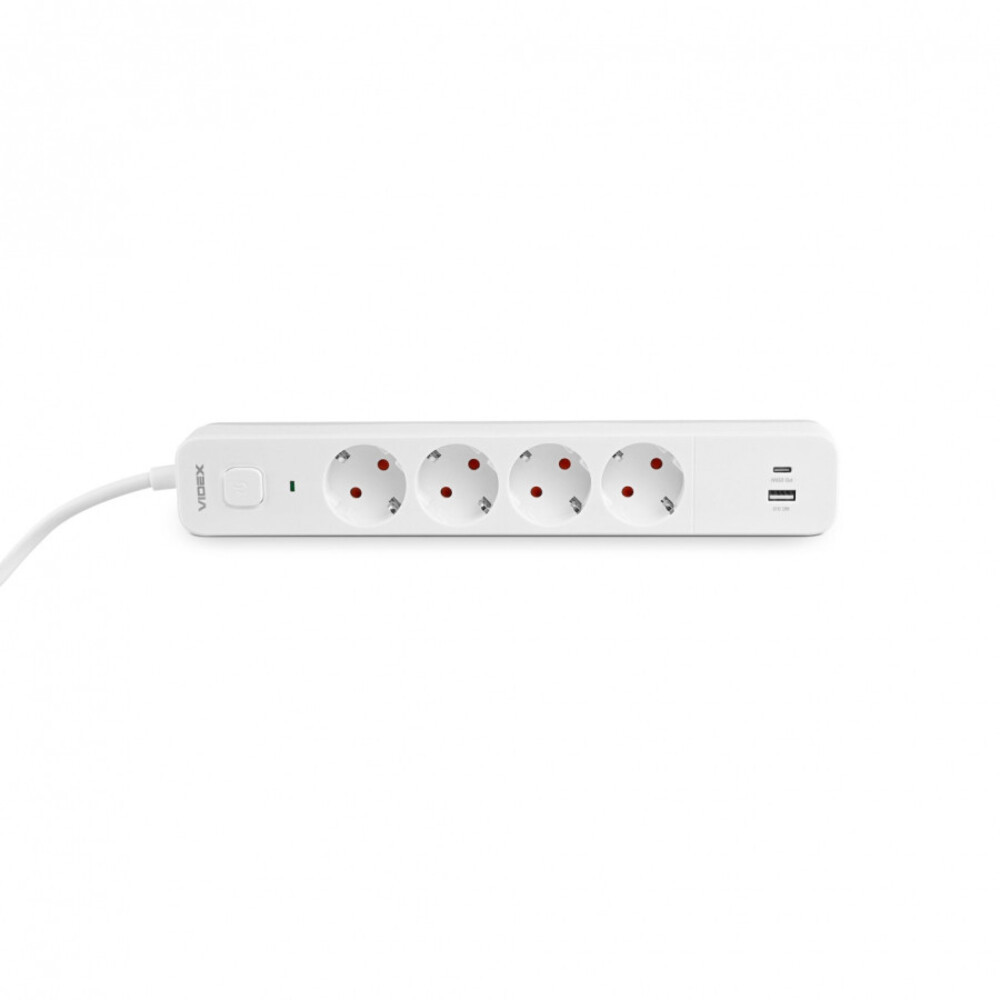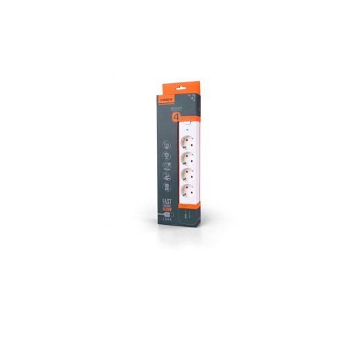 Videx Oncord fehér színű 4-es professzionális hosszabbító kapcsolóval 3m-es kábellel 1 x USB + 1 x USB-C, Konnektorok száma: 4 Nagyfeszültségű:250 V Hatalom:4000 W Frekvencia:50/60 Hz Módosítás:Négy EU + 1xUSB-A + 1xUSB-C USB feszültség:USB-A: DC 5V/3A, 9V/2A, 12V/1.5A; USB-C: DC 5V/3A, 9V/2.22A, 12V/1.67A. Földelés:+ Védettségi fok:IP20 Kábel, ledmasterb2b