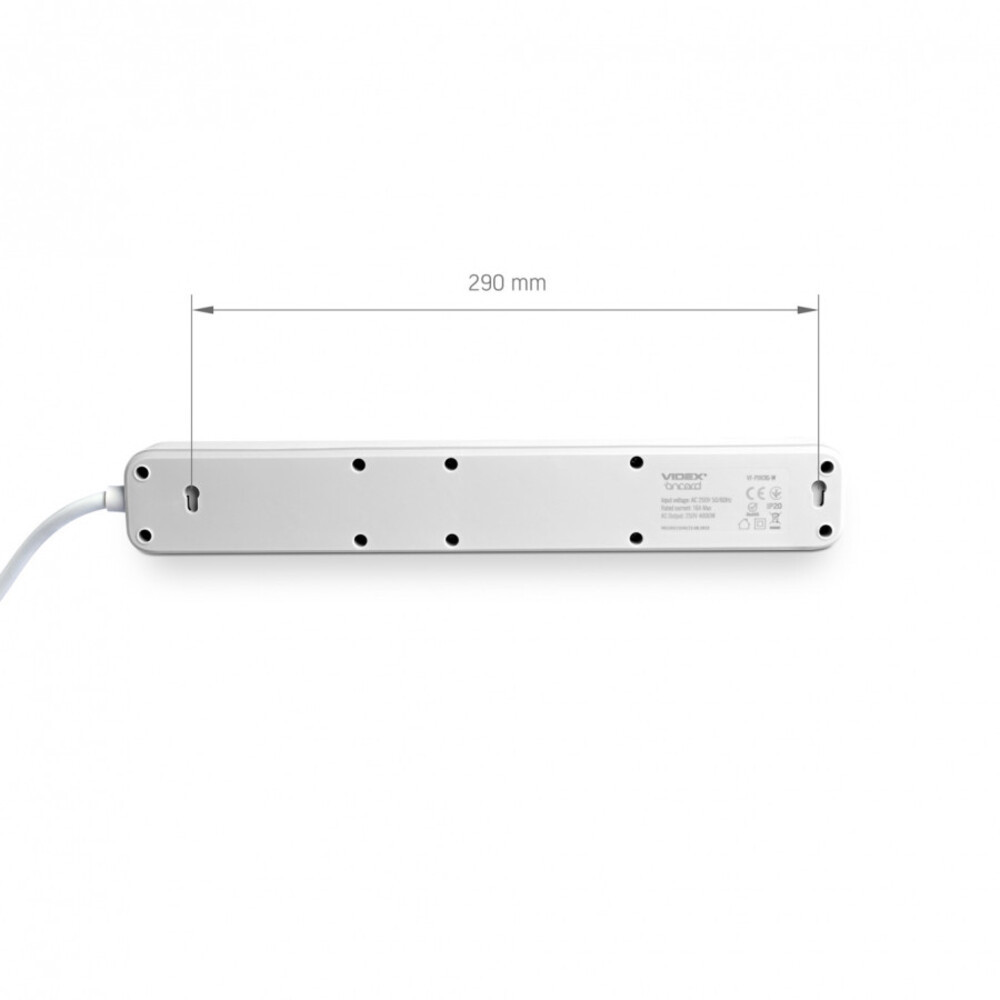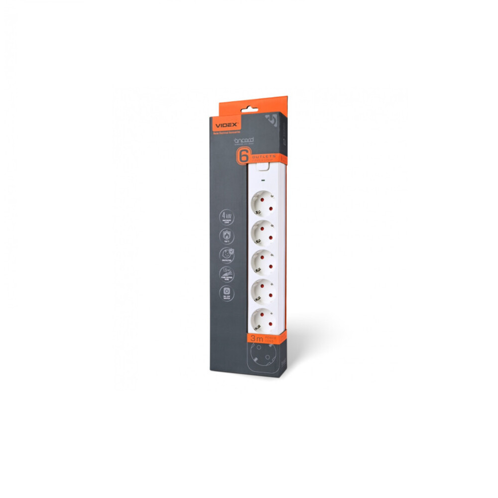 Videx Oncord fehér színű 6-os professzionális hosszabbító kapcsolóval 3m-es kábellel, Konnektorok száma: 6 Nagyfeszültségű:250 V Hatalom:4000 W Frekvencia:50/60 Hz Módosítás:Sebességváltó EU Földelés:+ Védettségi fok:IP20 Kábel vastagság:1,5 mm Jelenlegi erősség:16A Anyagok:Tűzálló (750°C-ig) polipropilén, sárgaréz, réz, PVC, ledmasterb2b