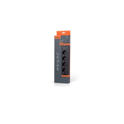Videx Oncord fekete színű 5-ös professzionális hosszabbító kapcsolóval 3m-es kábellel