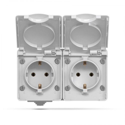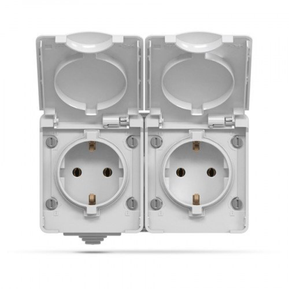 Vízmentes 2-es földelt csatlakozó aljzat , falon kívüli , szürke , kültéri , IP65 , VIDEX , BINERA