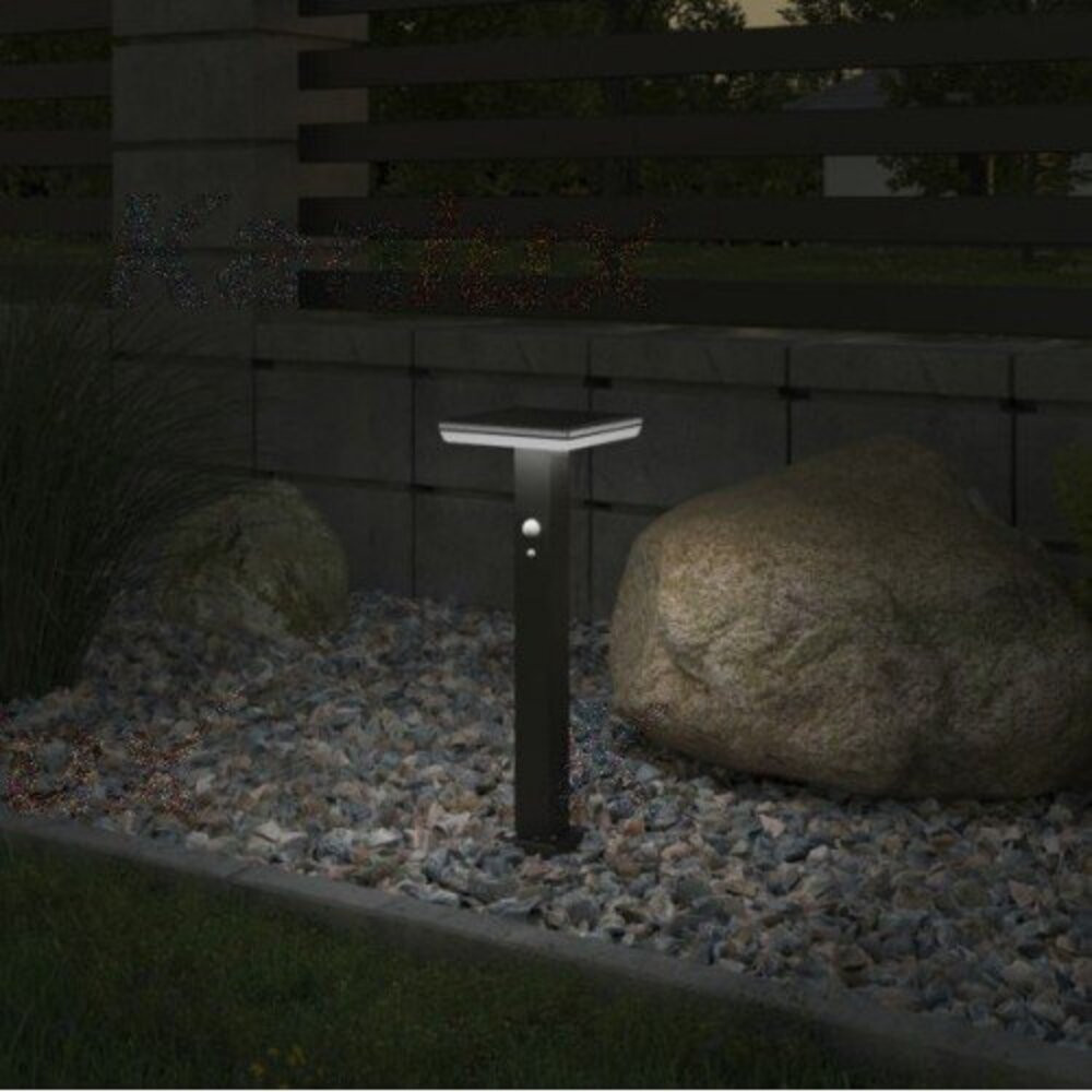 Led lámpatest , állólámpa , leszúrható , 5W , napelemes , mozgásérzékelős , négyzet , természetes fehér , fekete , IP44 , SOLCA