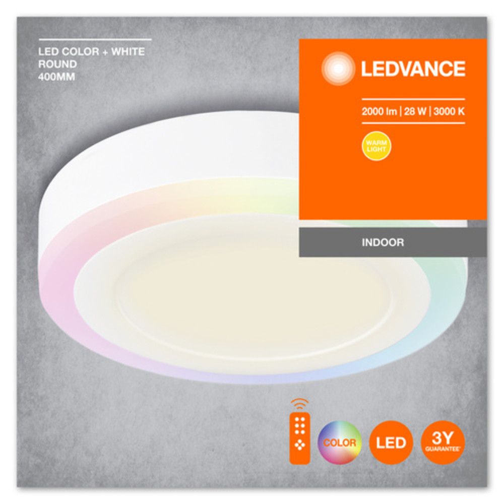 Ledvance LED Color + White Round távirányítós fali LED lámpa, melegfehér, RGB kerettel, 38 W, kerek, 1800LM