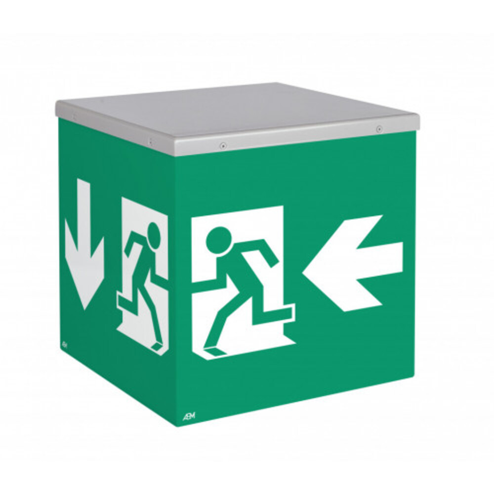 LED vészvilágító lámpatest , készenléti/állandó üzemmód , négyoldalú , mennyezeti szerelhetőség/függeszthető , IP42