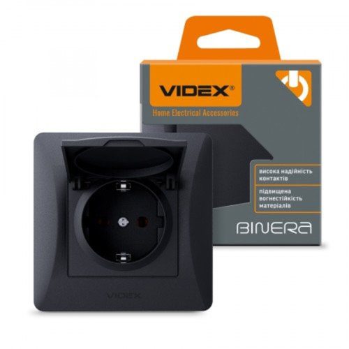 Földelt csatlakozó aljzat , dugalj, csapófedéllel , süllyesztett , fekete , VIDEX , BINERA