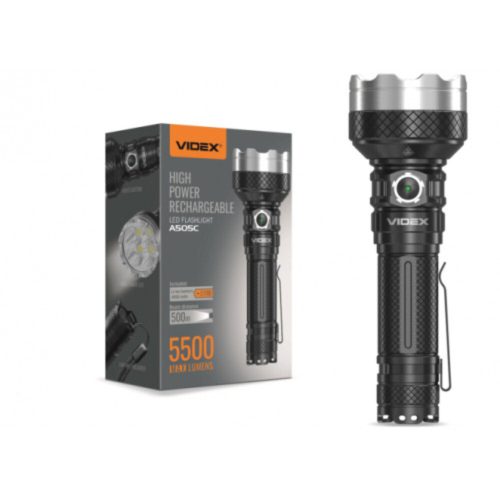 Led zseblámpa , dimmelhető , 6 világítási mód , hideg fehér , 5500 lumen , USB , IP68 , VIDEX
