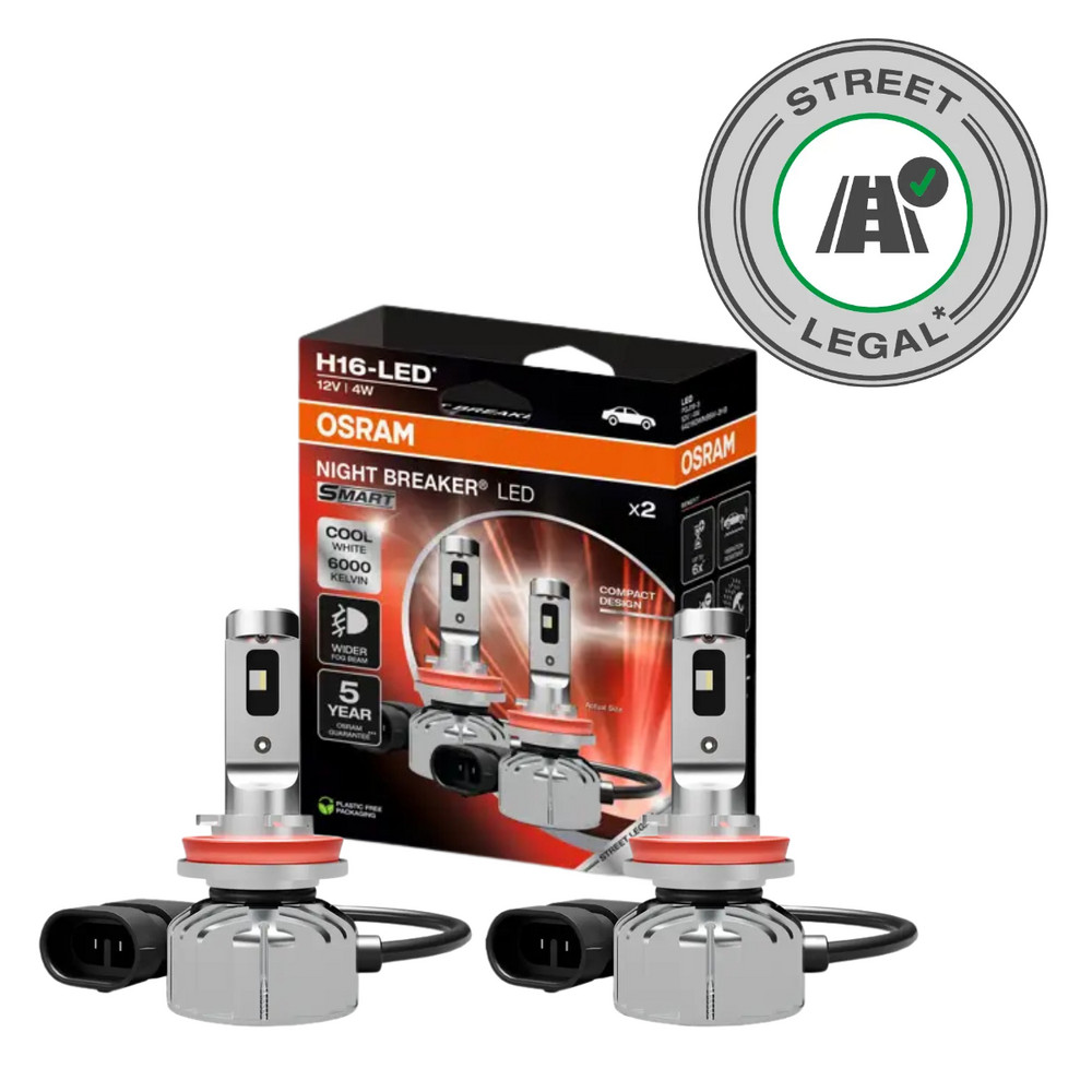 A közúton legálisan használhat )NIGHT BREAKER LED SMART ködfényszórókkal lehetősége nyílik a hagyományos halogénlámpákat korszerű, ködfényszóróként használható OSRAM LED-es technológiára cserélnie. Tökéletesen kiegészítik a már felszerelt, közúton legálisan használható OSRAM LED- vagy HID-lámpákat. Ideálisan kombinálhatóak, illetve tökéletes kiegészítést jelentenek az OSRAM NIGHT BREAKER LED lámpákhoz, és természetesen átfogó LED-es korszerűsítést biztosítanak.Az OSRAM közúton legálisan használható LED-lámpái új mércét állítottak fel az innováció, a pontosság, a változatosság és a funkcionalitás terén. Élen járnak a fényerő, az élettartam, a járművekkel való kompatibilitás, a dizájn és még sok egyéb jellemző tekintetében.A közúton legálisan használható1) NIGHT BREAKER LED SMART ködfényszórókkal a legmodernebb LED-es technológiára korszerűsítheti járműve ködfényszóró funkcióját. Ezek a LED-es cserelámpák képesek kiváltani a hagyományos lámpákat és foglalatokat. Modern, erős, akár 6000 kelvin színhőmérsékletű fehér fényt biztosítanak, és a hagyományos halogénlámpákhoz képest szélesebb ködfényszóró-fénynyalábbal rendelkeznek. Hidegfehér fény bárhol és bármikor. A hagyományos lámpákhoz, például halogénlámpákhoz képest ezek a LED-es retrofit lámpák akár 80%-kal kevesebb energiát fogyasztanak, meggyőző LED-es technológiával és egyedi fejlesztésű rezgésálló kialakítással rendelkeznek, valamint akár 6-szor hosszabb élettartam jellemzi őket2). A lámpák a DIN-tanúsítvánnyal rendelkező, szélsőséges környezeti hatásokat biztosító környezetszimulációs laboratóriumunkban lettek bevizsgálva a víz és a por behatolása szempontjából, és megfeleltek az IP54 védelmi osztály előírásainak. Mostantól lecserélheti járműve hagyományos lámpáit az OSRAM forradalmi NIGHT BREAKER LED retrofit lámpáira, és megtapasztalhatja a trendteremtő fényerőt, amelyet közúton is legálisan használhat. Ezen túlmenően az OSRAM egyedi garanciát biztosít minden NIGHT BREAKER LED retrofit lámpára.