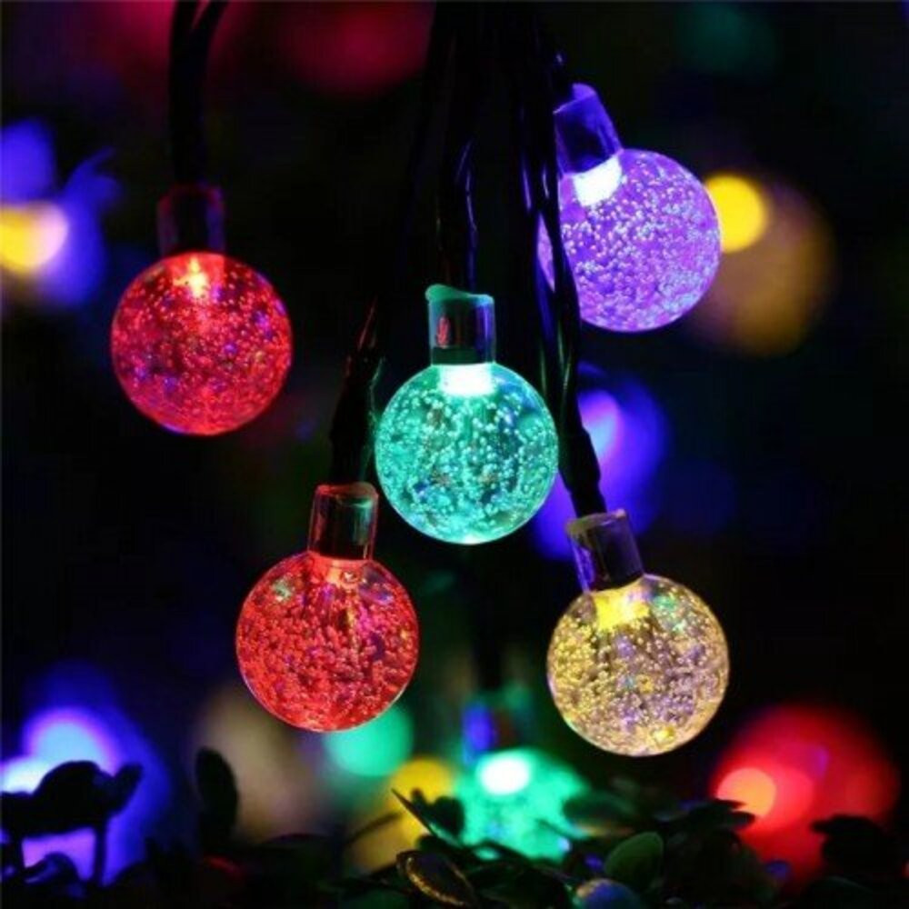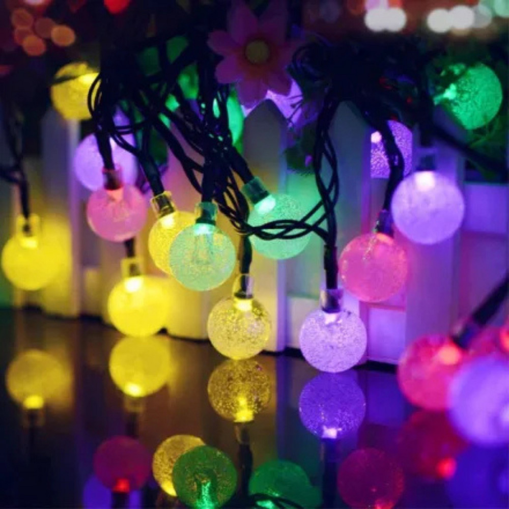 Led fényfüzér , kültéri , napelemes , esőcsepp , gömb alakú , 30 db , 2 m , színes , IP44