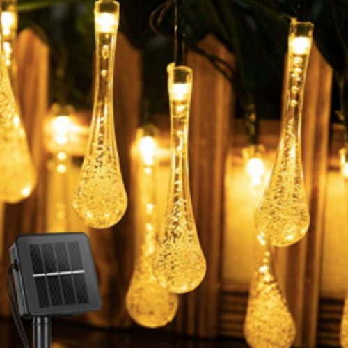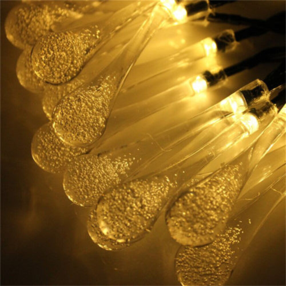 Led fényfüzér , kültéri , napelemes , vízcsepp alakú , 30 db , 2 m , meleg fehér , 8 programos , IP44