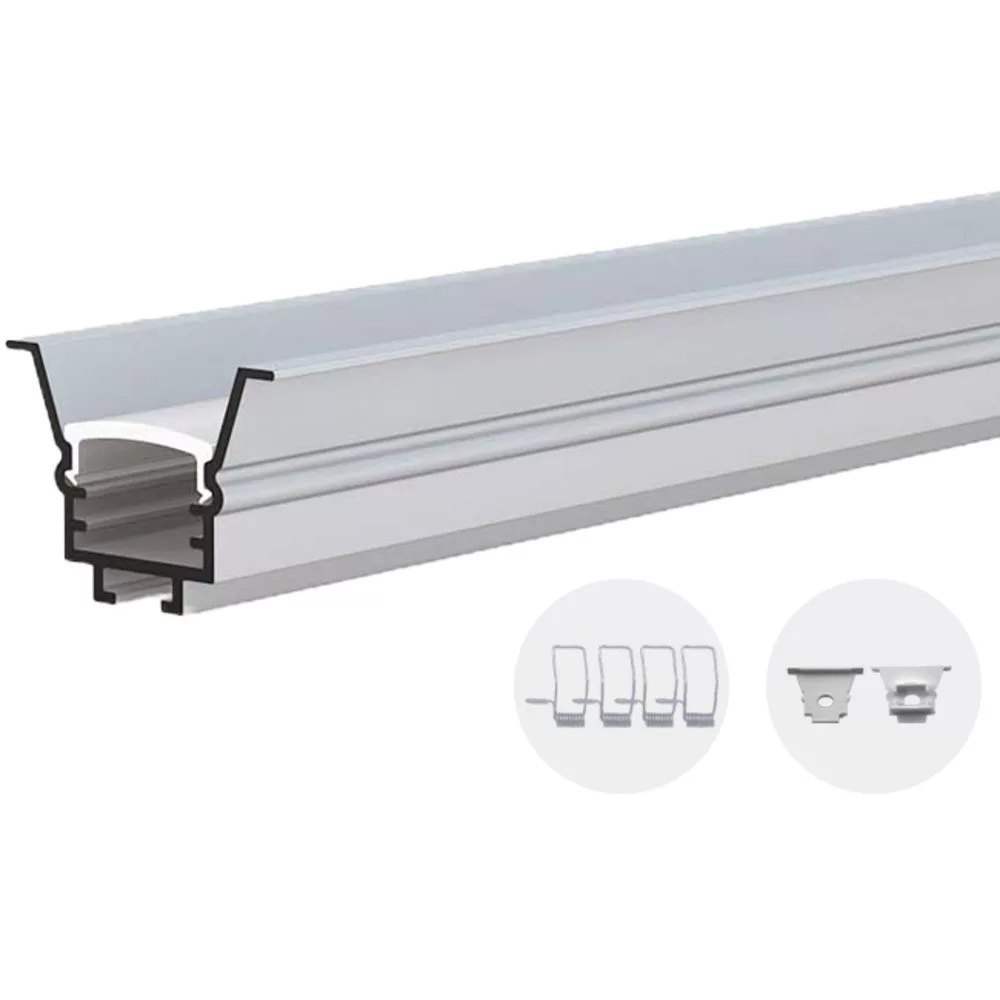 Elegáns, masszív alumínium profil kifejezetten LED szalagok diszkrét, professzionális beépítéséhez. Ezüst test és fehér, enyhén opálos takaró biztosítja az egyenletes fényeloszlást és csökkenti a csíkosságot, miközben letisztult, modern megjelenést kölcsönöz a világított felületnek. A profil hatékony hőelvezetést biztosít, hozzájárulva a LED szalag élettartamának növeléséhez és a fény teljesítményének stabilizálásához. Védi a LED szalagot porral és kisebb mechanikai behatásokkal szemben, ezért ideális bútor-, konyhapult-, polc- és rejtett világítási alkalmazásokhoz. Gyors és egyszerű beszerelés: a LED szalag beillesztése a profilba, rögzítése szerelőklippekkel vagy ragasztással, majd a fehér takaró felpattintása után a világítás készen áll. Kiegészítők (végzárók, rögzítők, különböző fedők) külön beszerezhetők; a profil kompatibilis a szabványos szélességű LED szalagokkal. Ajánlott megoldás, ha esztétikus, egyenletes és tartós világítást szeretne kialakítani.