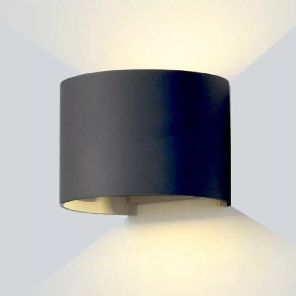 LED lámpatest , oldalfali , kerek , 2 irányú , 6W , meleg fehér , állítható sugárzási szög , fekete , kültéri , IP44
