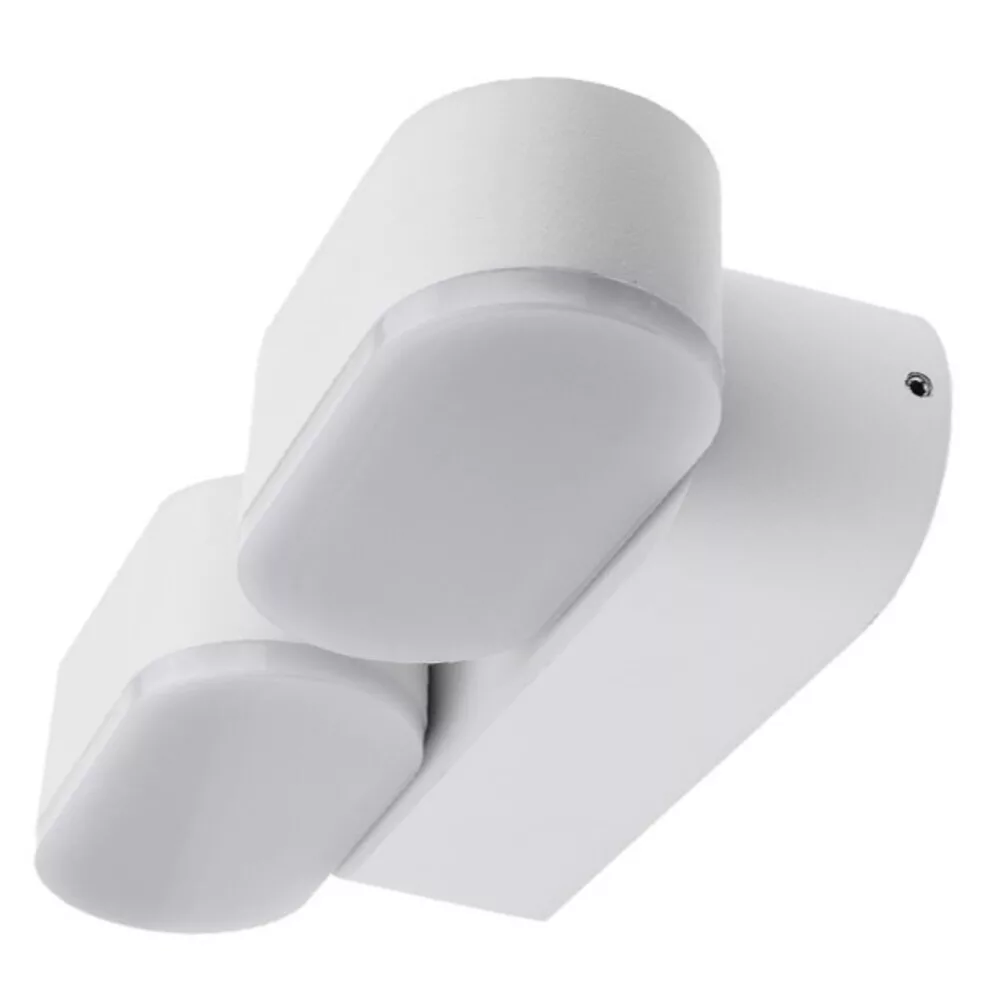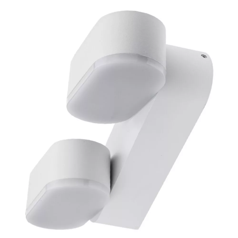 Prémium minőségű LED fali lámpa Epistar LED-chipekkel, fehér házzal és forgatható fejjel. Két, különállóan állítható 6 W-os egységből álló kialakítása összesen 12 W teljesítményt biztosít, 4000 K-es természetes fehér fényével egyenletes, jó színvisszaadású világítást nyújt. 1320 lumen fényáram mellette energiahatékony megoldás, alacsony fogyasztással és hosszú élettartammal. IP54 védettsége révén alkalmas kültéri, illetve nedves környezetben található, de fedett helyeken lévő szerelésre (pl. bejáratok, teraszok, erkélyek, folyosók, fürdőszobai zónák).