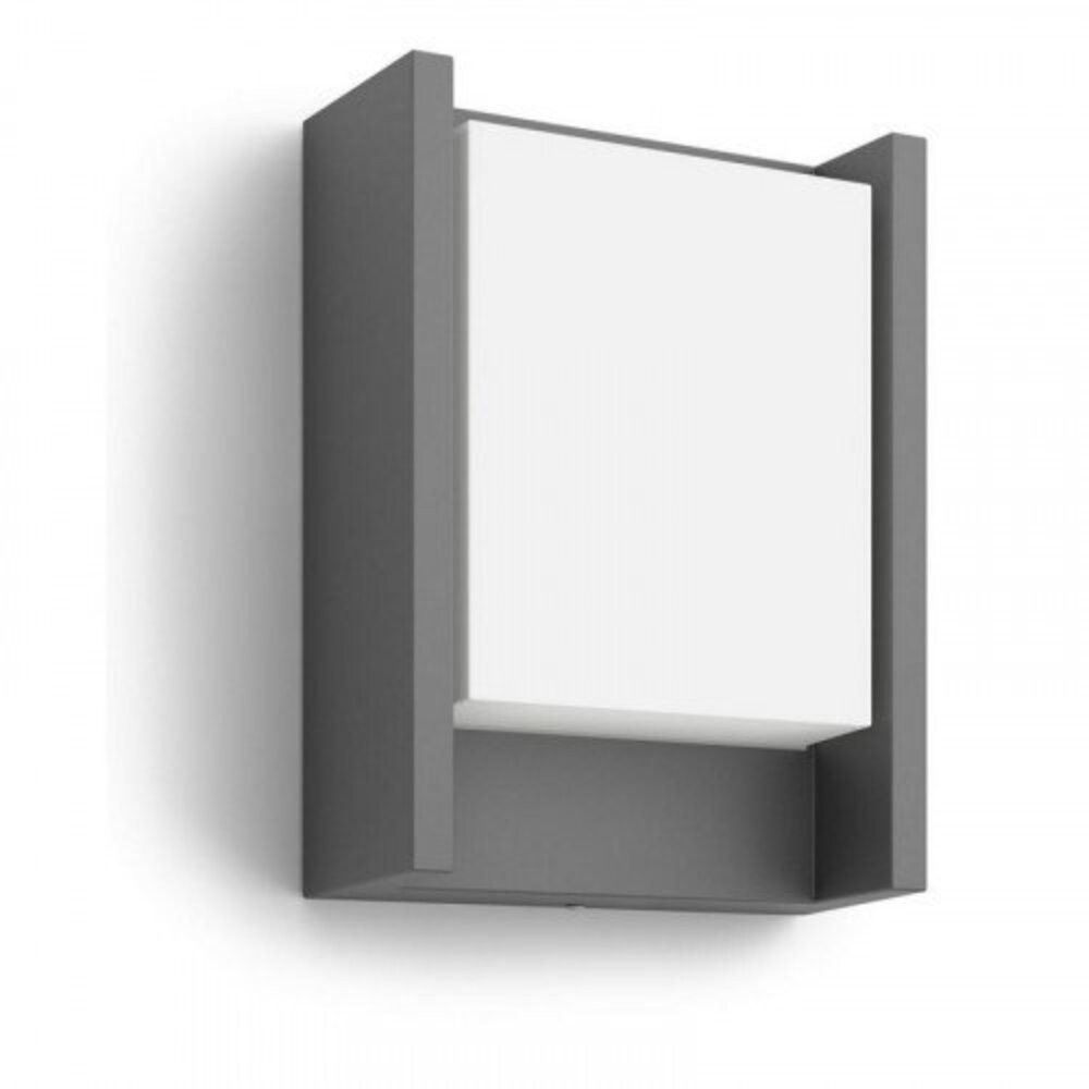 Az antracit szürke Philips Arbour LED fali lámpái fröccsöntött alumíniumból készülnek. A tartóegység belsejében egy 6 wattos LED modul található. A lámpa bőséges, szórt meleg fehér fénnyel világítja be a külső tereket.