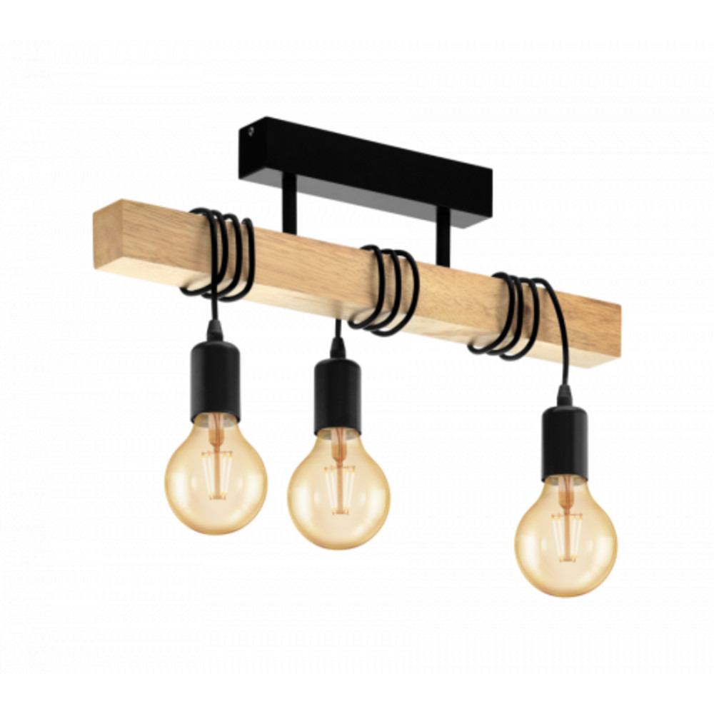 LED lámpa függeszték , mennyezeti , 3 x E27 , acél , fa , fekete , EGLO , TOWNSHEND , 32915