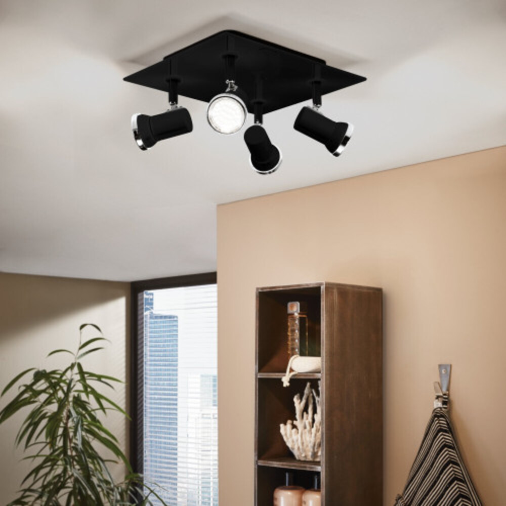 LED lámpatest , mennyezeti , spot , 4 x 3 Watt , meleg fehér , üveg , fekete , IP44 , EGLO , TAMARA 1 , 33678