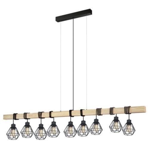 LED lámpa függeszték , mennyezeti , 9 x E27 , acél , fa , fekete , EGLO , TOWNSHEND 5 , 43134