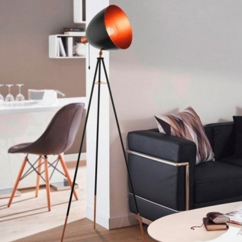 LED lámpa , állólámpa , E27 , acél , fekete , vörösréz , EGLO , CHESTER , 49386