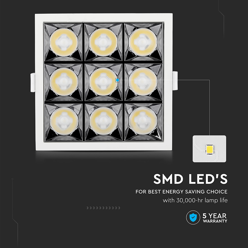 Bemutatkozik a VT-2-36 36 W-os LED reflektoros mélysugárzó, amelyet hatékonyságra és eleganciára terveztek. Prémium Samsung chippel ellátott, ez a mélysugárzó meleg fehér fényt bocsát ki 2700 K színhőmérsékleten, így tökéletes a barátságos légkör megteremtéséhez. 2880 lumen fényerejével és 2880 effektív lumenével kivételes fényerőt kínál, miközben energiahatékonyságot biztosít, F (2021) energiaosztályú, akár 85%-os energiamegtakarítással. A tartós, négyzet alakú alumínium házzal ellátott mélysugárzó zökkenőmentesen illeszkedik bármilyen dekorációba. Kompakt méretével, 130x130x47 mm-es, és az egyszerű süllyesztett telepítéshez 120x120 mm-es vágási méret szükséges. A 12°-os sugárzási szög hatékonyan kiemeli az építészeti jellegzetességeket, így ideális kereskedelmi és lakossági alkalmazásokhoz. Ez a modell -20 és +45°C közötti széles hőmérsékleti tartományban működik, és hosszú, 30 000 órás élettartammal rendelkezik, ami biztosítja a megbízhatóságot és csökkenti a karbantartási költségeket. A 0,9-nél nagyobb teljesítménytényezővel és a 90 feletti színvisszaadási indexszel (CRI) kiváló fényminőséget garantál. Élvezze a nyugalmat az 5 éves garanciának és a villódzásmentes teljesítménynek, valamint az IP20-as besorolásnak köszönhetően, így beltéri környezetbe is alkalmas. A csomagolás 20 darabot tartalmaz dobozonként, és a termék sokoldalú konfigurációkhoz összekapcsolható. Válassza a VT-2-36 LED reflektoros mélysugárzót, hogy tartós minőséggel és energiatakarékos kialakítással fokozza világítási élményét.