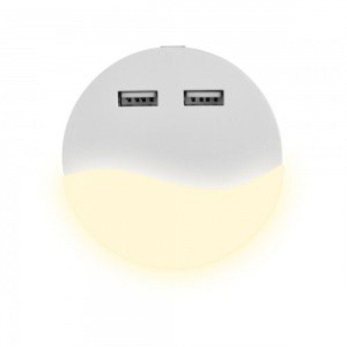 LED lámpatest , éjszakai irányfény , 2 db USB csatlakozóval , 0.5W , kerek , természetes fehér , Samsung Chip