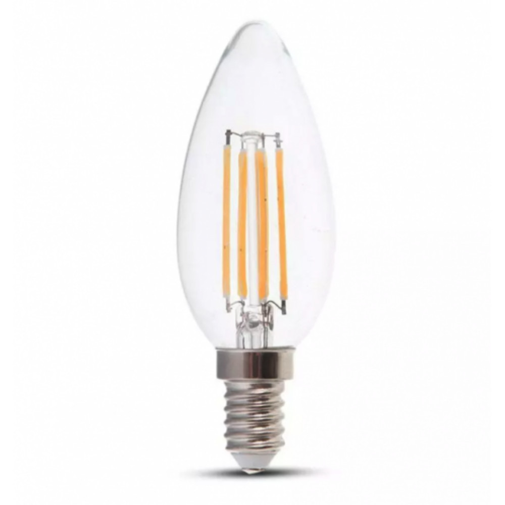 LED lámpa , égő , izzószálas hatás , filament , gyertya , E14 foglalat , 4 Watt , 300° , meleg fehér , 2 darab