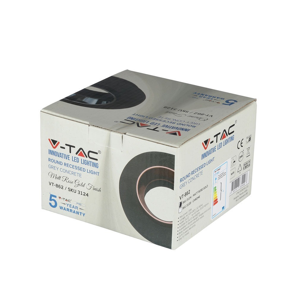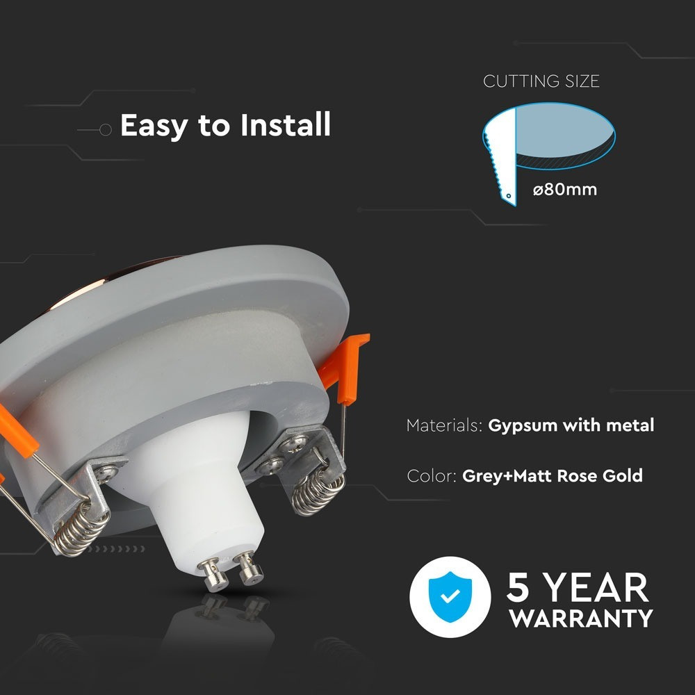 LED spotlámpa keret kerek, GU10, szürke, matt rózsaarany, V-TAC, 3124