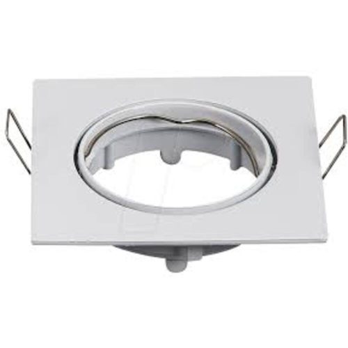 Fehér színű, négyzet alakú süllyesztett lámpatest, öntött alumínium ötvözetből, billenthető kivitelben (15 fokos szögben állítható).
