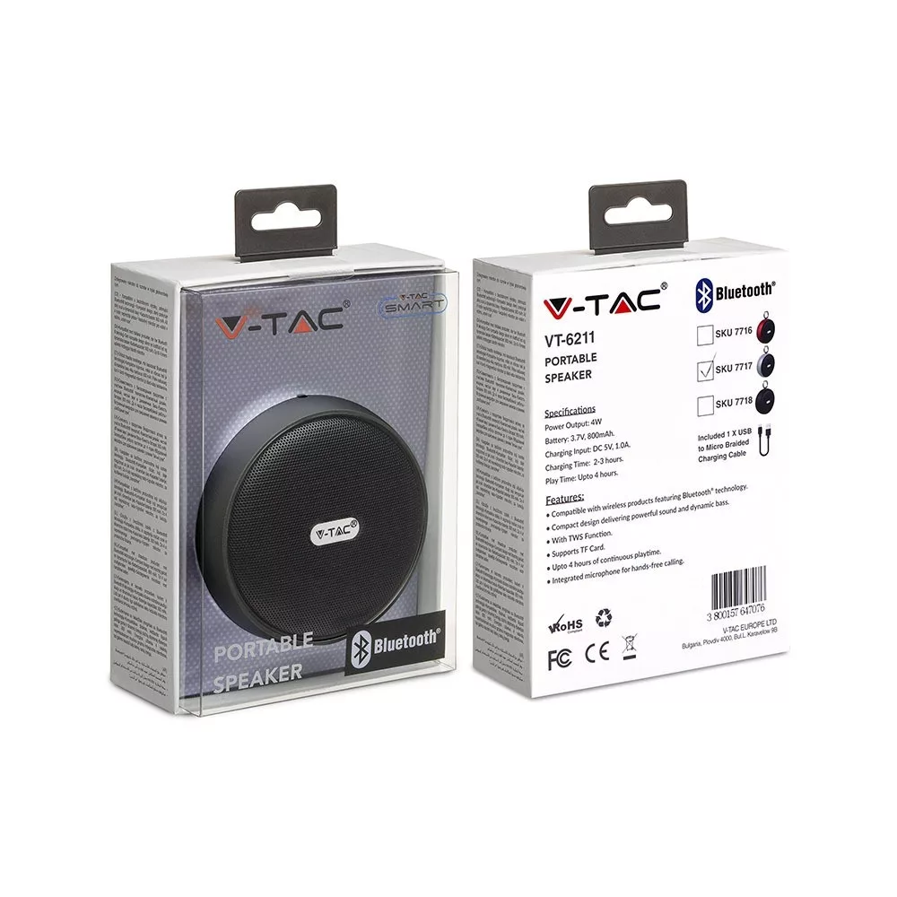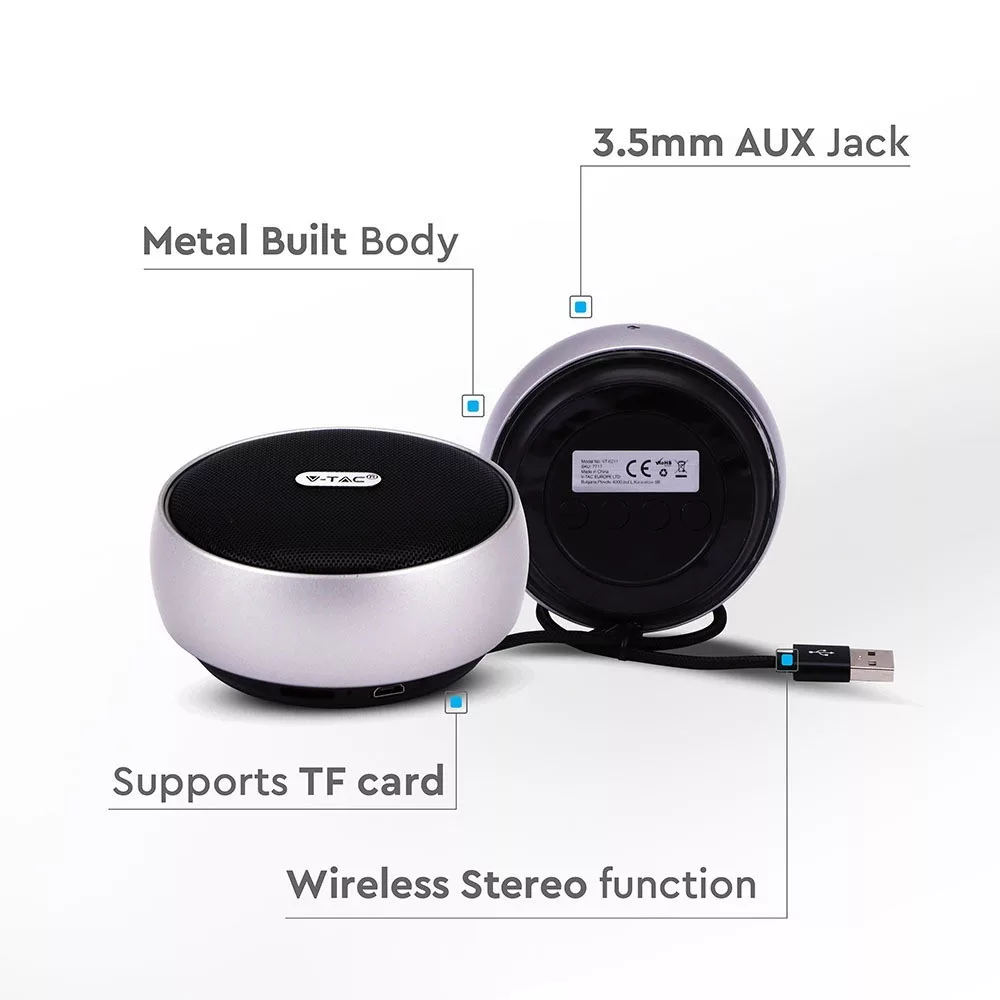 Hordozható hangszóró LED világítással, szürke, V-TAC, 7717
