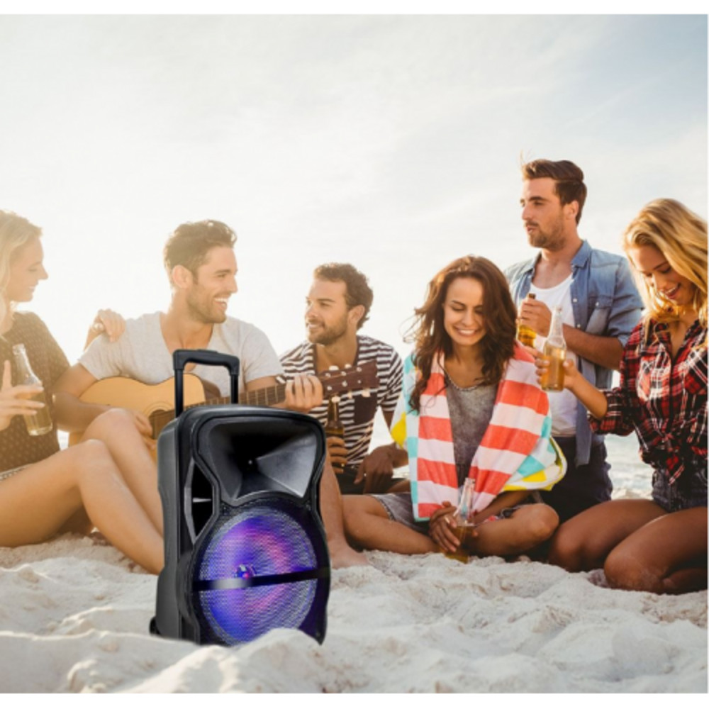 Vezeték nélküli USB-ről tölthető, gurulós Bluetooth hangszóró, amely beépített RGB (színes) világítási funkciójának, valamint a tartozék mikrofonnak köszönhetően tökéletes parti kellék lehet. Hordozhatósága és kompakt mérete lehetővé teszi, hogy bárhova magunkkal vihetjük, így otthon, akár a kertben, sátrazás, utazás, nyaralás közben is használható.