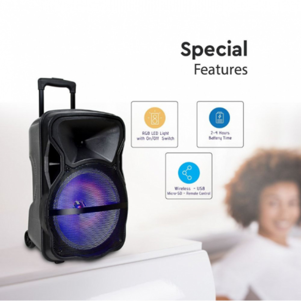 Vezeték nélküli USB-ről tölthető, gurulós Bluetooth hangszóró, amely beépített RGB (színes) világítási funkciójának, valamint a tartozék mikrofonnak köszönhetően tökéletes parti kellék lehet. Hordozhatósága és kompakt mérete lehetővé teszi, hogy bárhova magunkkal vihetjük, így otthon, akár a kertben, sátrazás, utazás, nyaralás közben is használható.