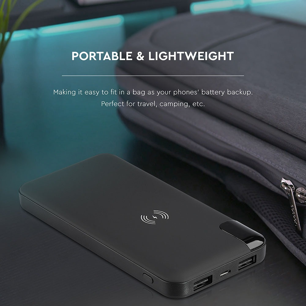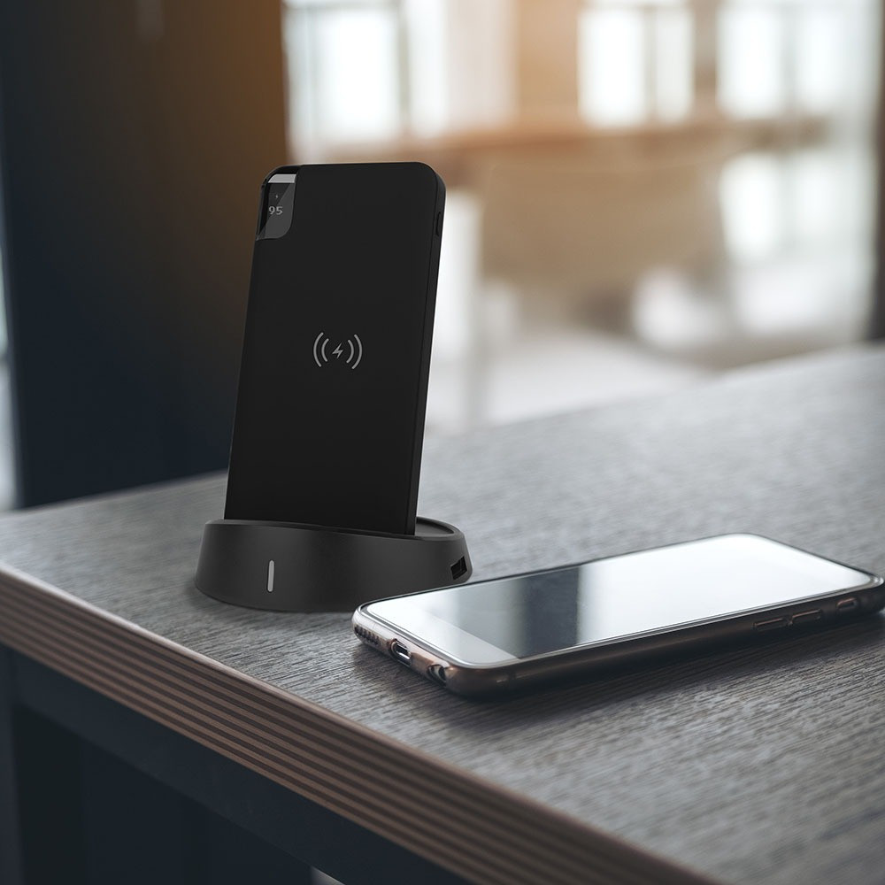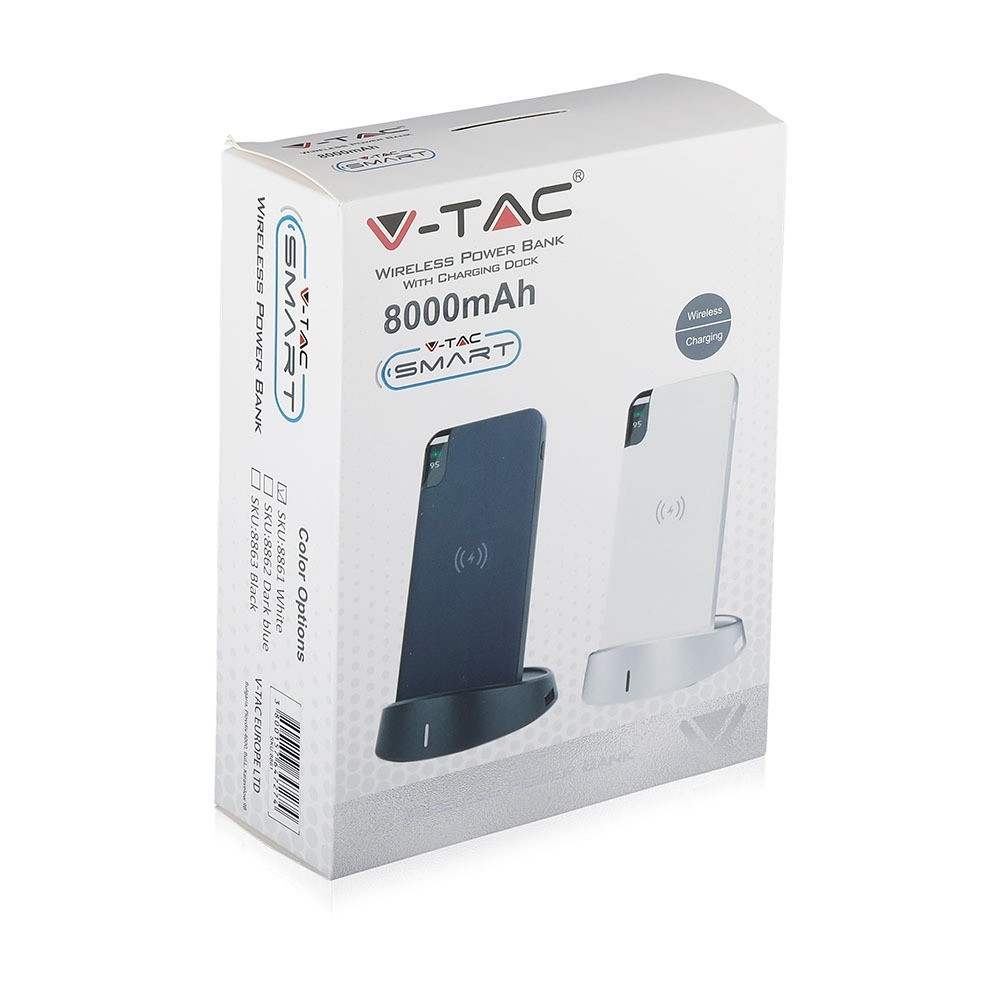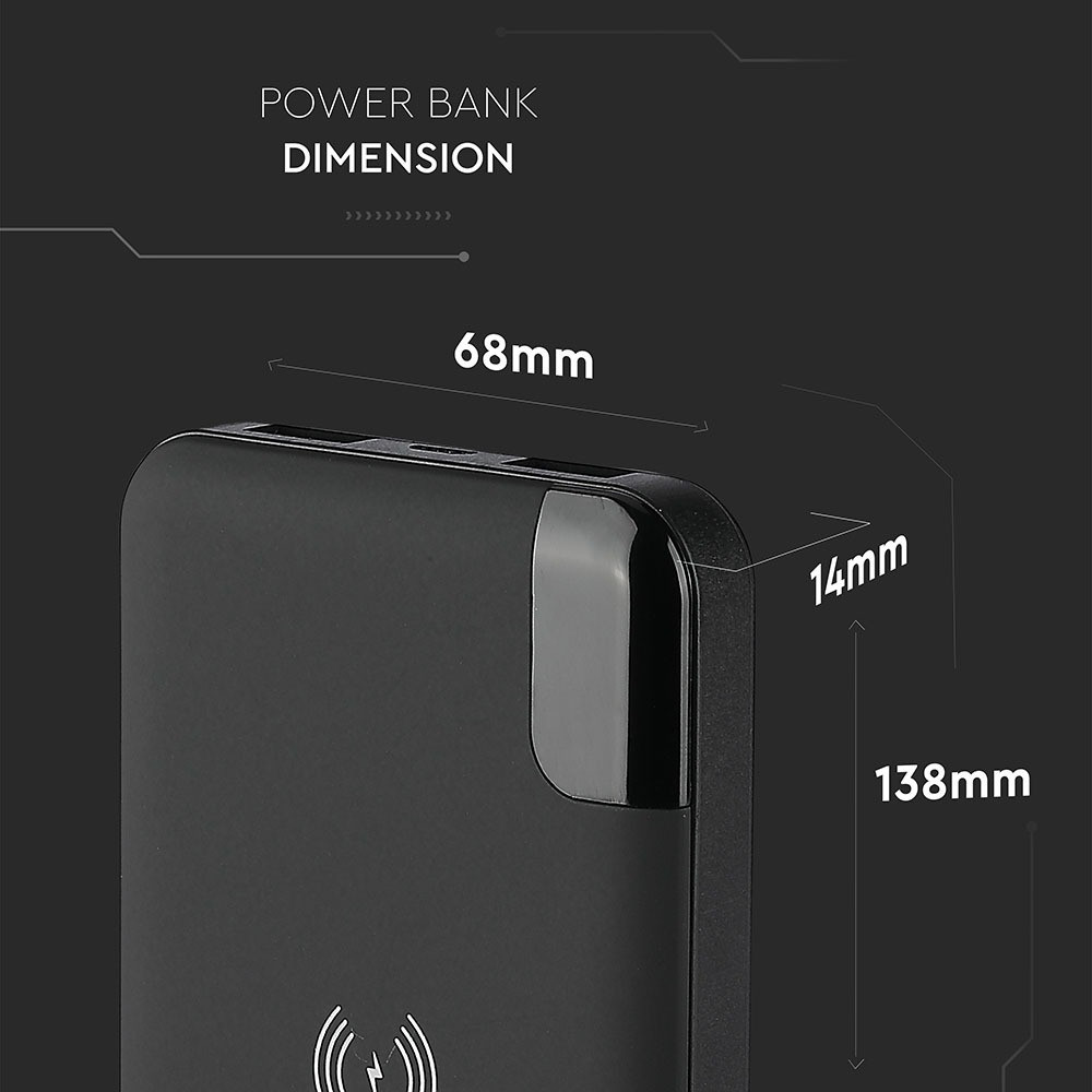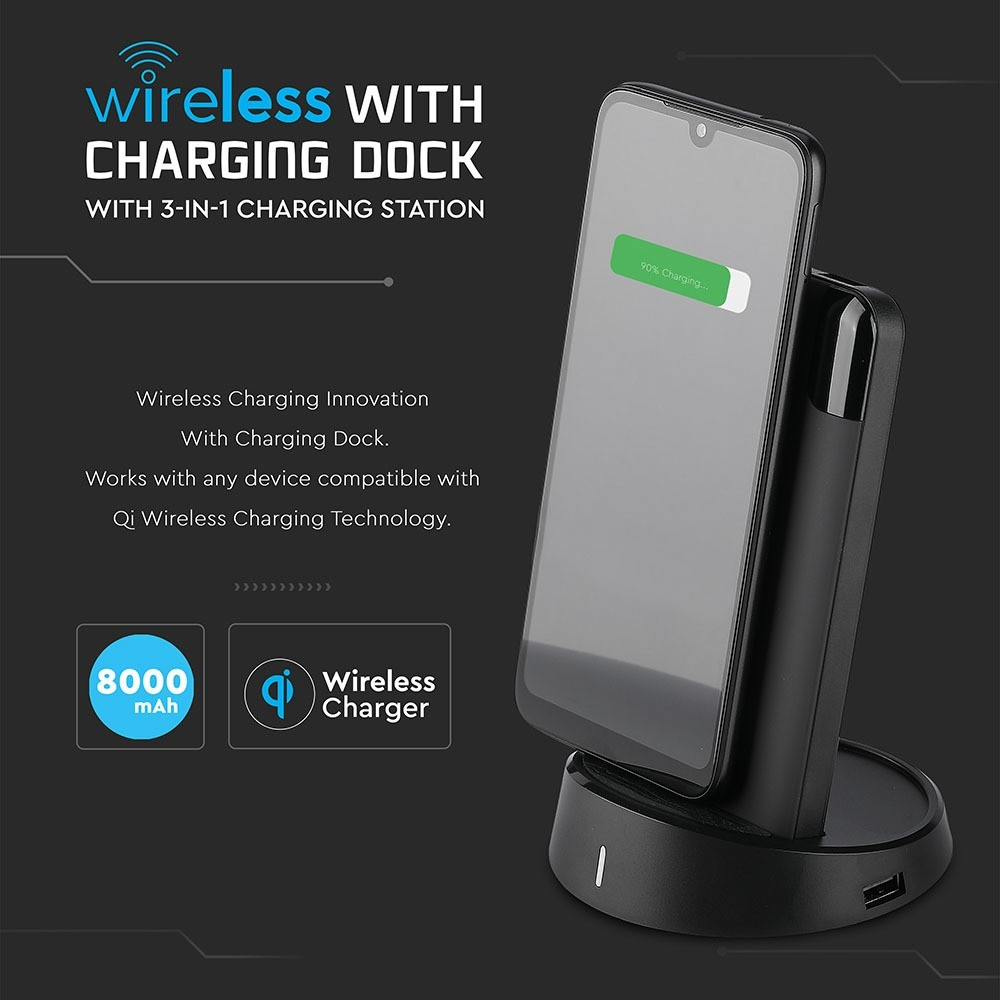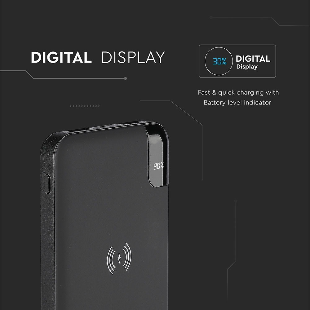 VT-3509 8000Mah Vezeték Nélküli Power Bank Kijelzővel És Állványnyal - Fekete