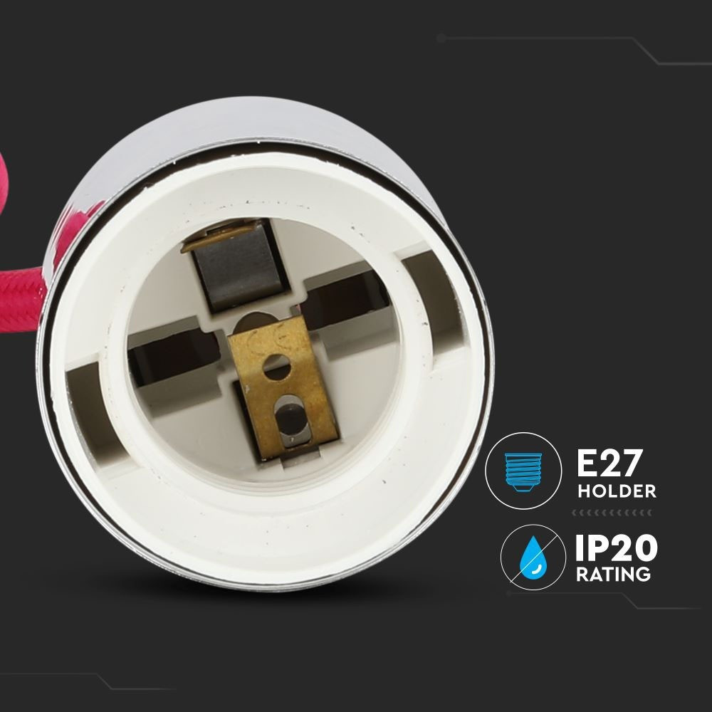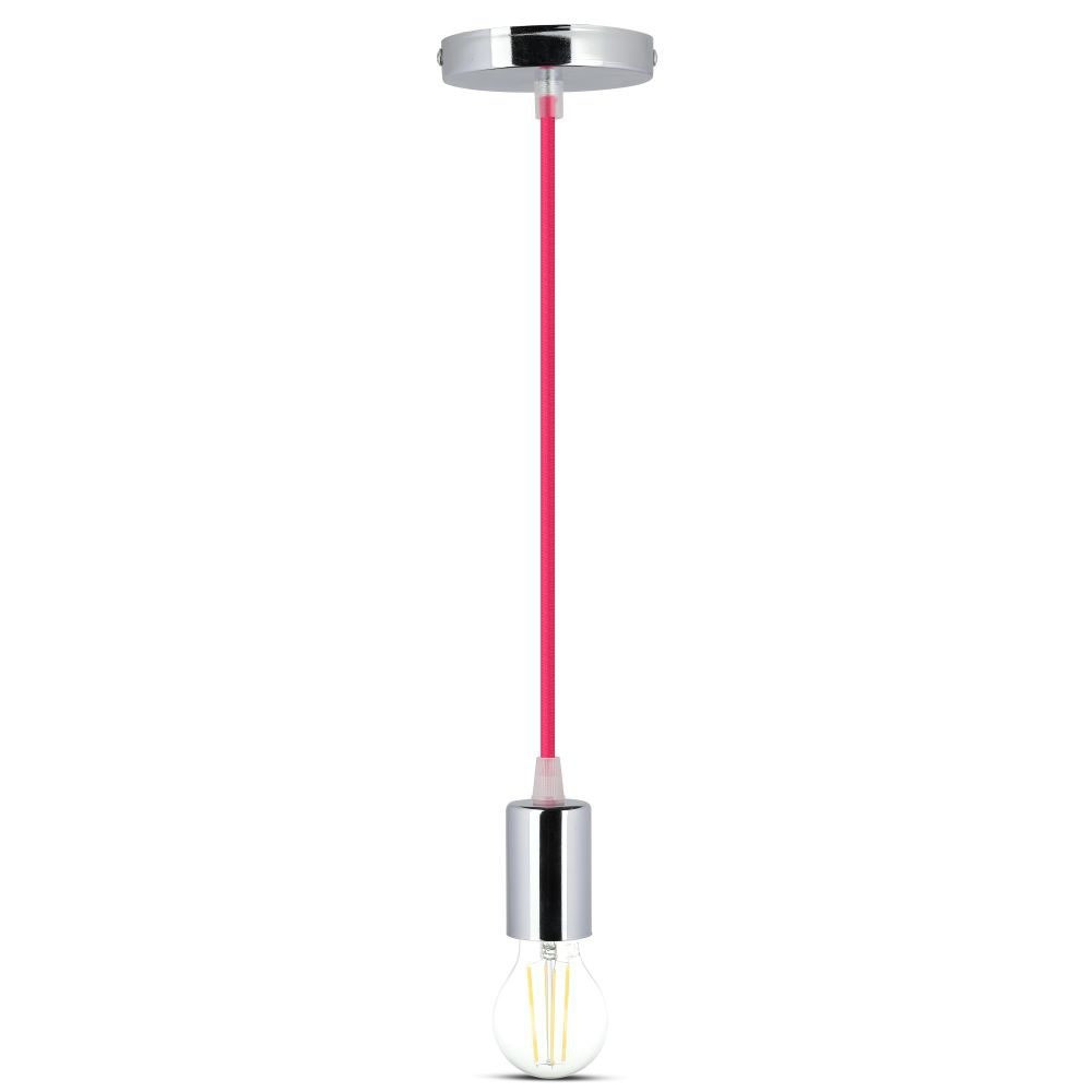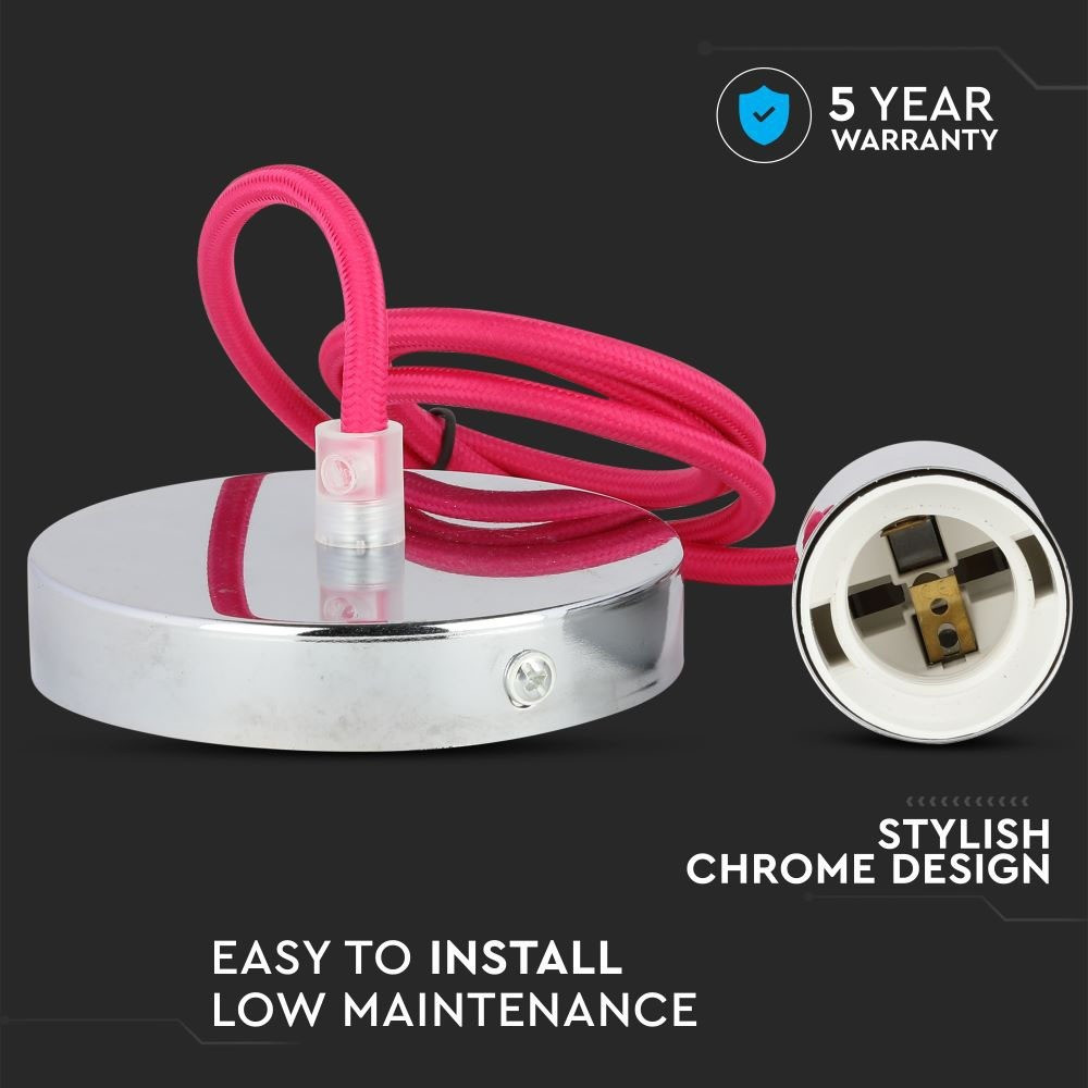 Króm függeszték, E27, rózsapiros vezetékkel, V-TAC, 3792