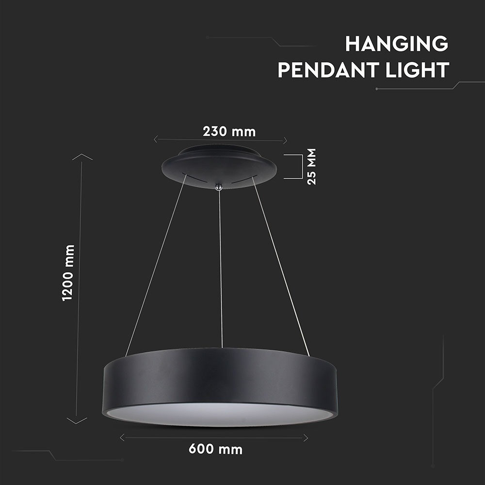 Kerek csillár, 30w, 3000K, meleg fehér, 2250lm, 120°, fekete, CRI>80, dimmelhető, V-TAC, 3996