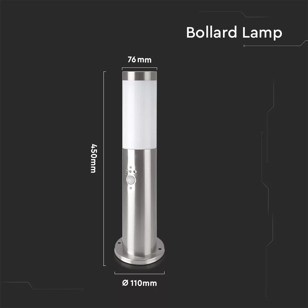 Dobd fel kültéri teredet a VT-838 oszloplámpával, amely stílusos szatén nikkel bevonattal és tartós rozsdamentes acél testtel rendelkezik. A 45 cm magas modern lámpa tökéletes ösvények és kertek megvilágítására, miközben letisztult kialakítása bármilyen környezethez illik. PIR érzékelővel felszerelt VT-838 2-8 méteres tartományon belül érzékeli a mozgást, így biztonságot és kényelmet biztosít azzal, hogy a közeledtére felvillan. IP44-es besorolásának köszönhetően kültéri használatra alkalmas, víz- és porálló. A lámpa 220-240 V AC hálózatról működik, és E27-es izzót támogat, így maximum 60 watt teljesítményt nyújt, így energiatakarékos. A sugárzási szöge nagy kültéri területek lefedésére szolgál, és könnyen telepíthető. A termék 6 darabos kartondobozokban kapható, a kompakt doboz mérete 115 mm x 115 mm. Minden egység súlya 0,82 kg, így könnyű, mégis masszív kültéri alkalmazásokhoz. Élvezze a minőségi funkciókat, mint például a hosszú élettartamot, a megbízható teljesítményt és az elegáns kialakítást, így a VT-838 oszloplámpa ideális kiegészítője kültéri világítási megoldásainak.