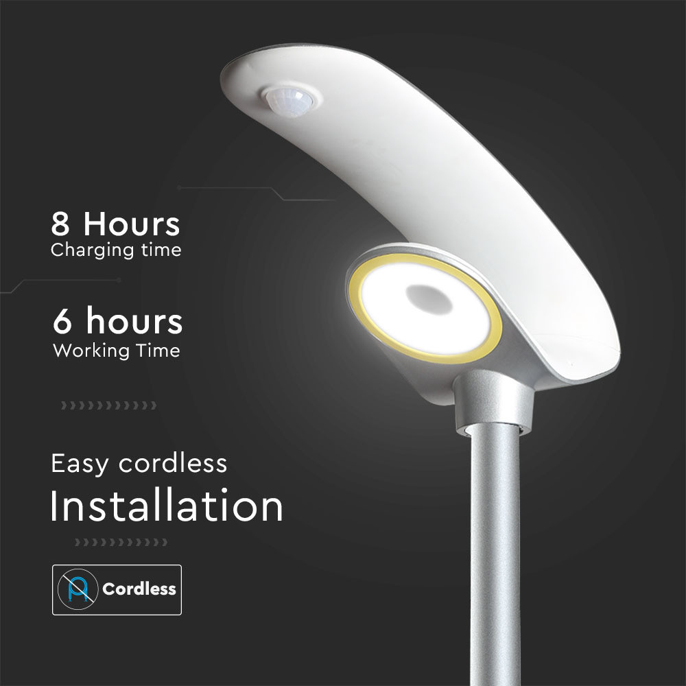 Leszúrható Szolár LED kerti lámpa mozgásérzékelővel, 20w, 6400K, hideg fehér, 2000lm, 120, ezüst, IP65, V-TAC, 5506