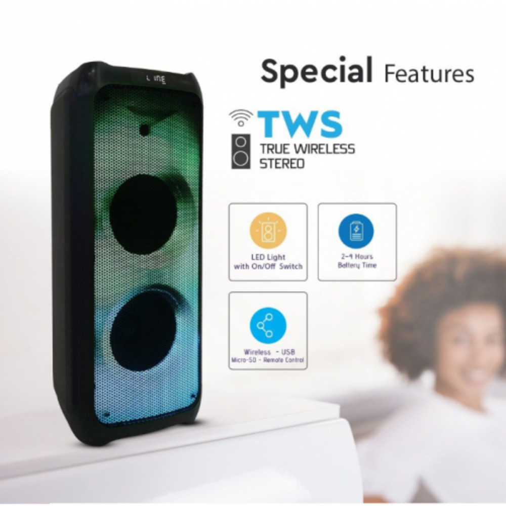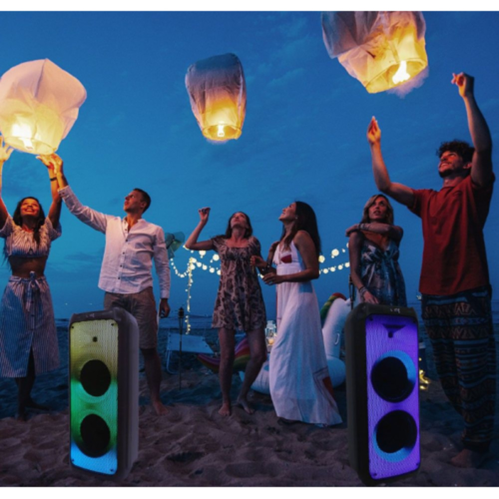 Vezeték nélküli USB-ről tölthető, Bluetooth hangszóró, amely beépített RGB (színes) világítási funkciójának, valamint a tartozék mikrofonnak köszönhetően tökéletes parti kellék lehet. Hordozhatósága és kompakt mérete lehetővé teszi, hogy bárhova magunkkal vihetjük, így otthon, akár a kertben, sátrazás, utazás, nyaralás közben is használható.