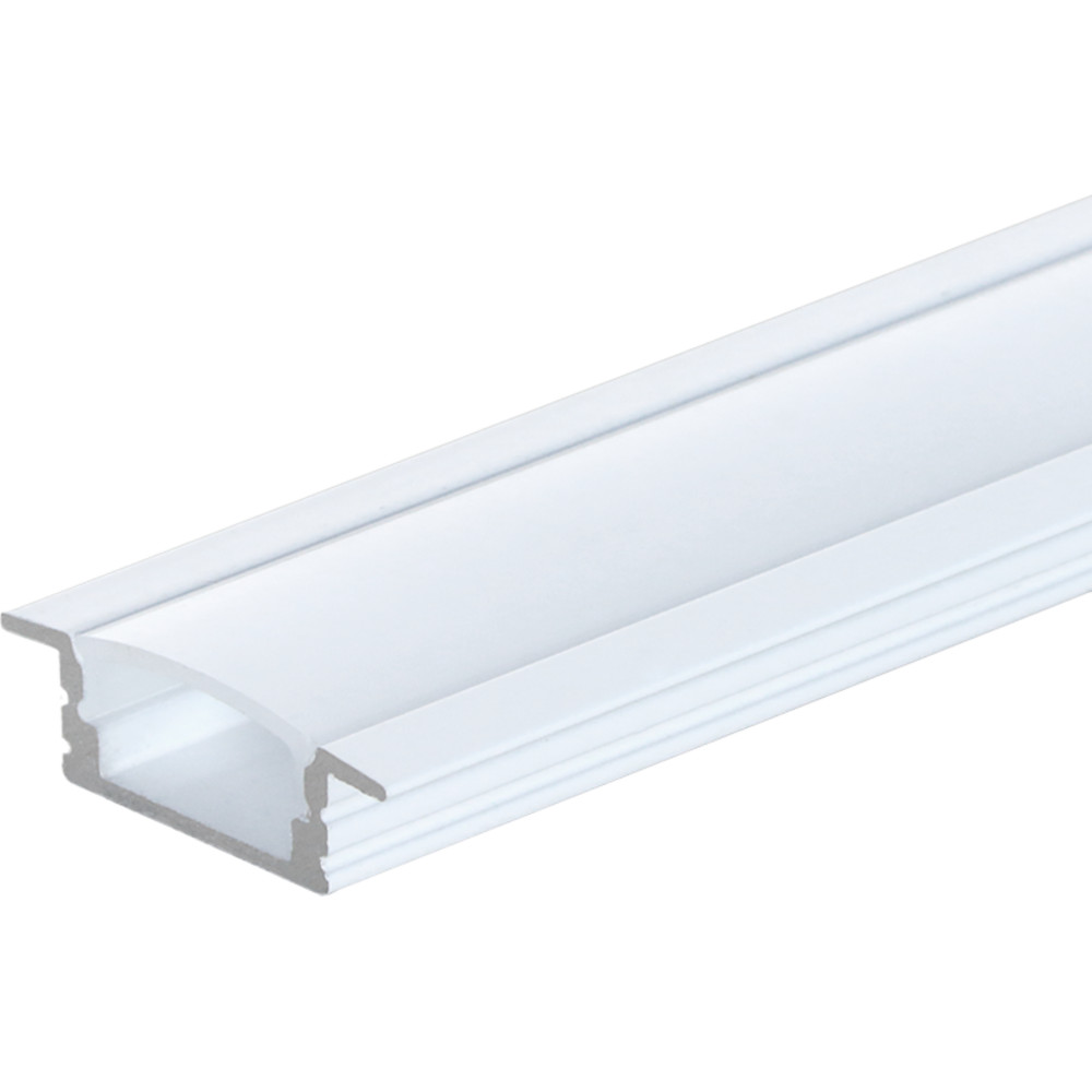 Beépített alumínium profil LED szalaghoz, fehér házzal és fehér fedővel, Optonica márkajelzéssel. Korrózióálló alumínium konstrukciója hatékony hőelvezetést biztosít, ezáltal növeli a LED szalag élettartamát és megbízhatóságát. A fehér fedőlap egyenletes fényeloszlást biztosít, csökkenti a pixeles hatást és mérsékeli a vakítást, így diszkrét, professzionális megjelenésű beépített világítást eredményez. Ideális bútorokba, konyhapult alá, lépcsőkbe és egyéb rejtett beltéri világítási megoldásokhoz. Egyszerűen szerelhető előkészített marási hornyokba vagy sínekbe, kompatibilis a legtöbb standard LED szalaggal; használható végzárókkal és rögzítő klipszekkel a tiszta, esztétikus befejezés érdekében.