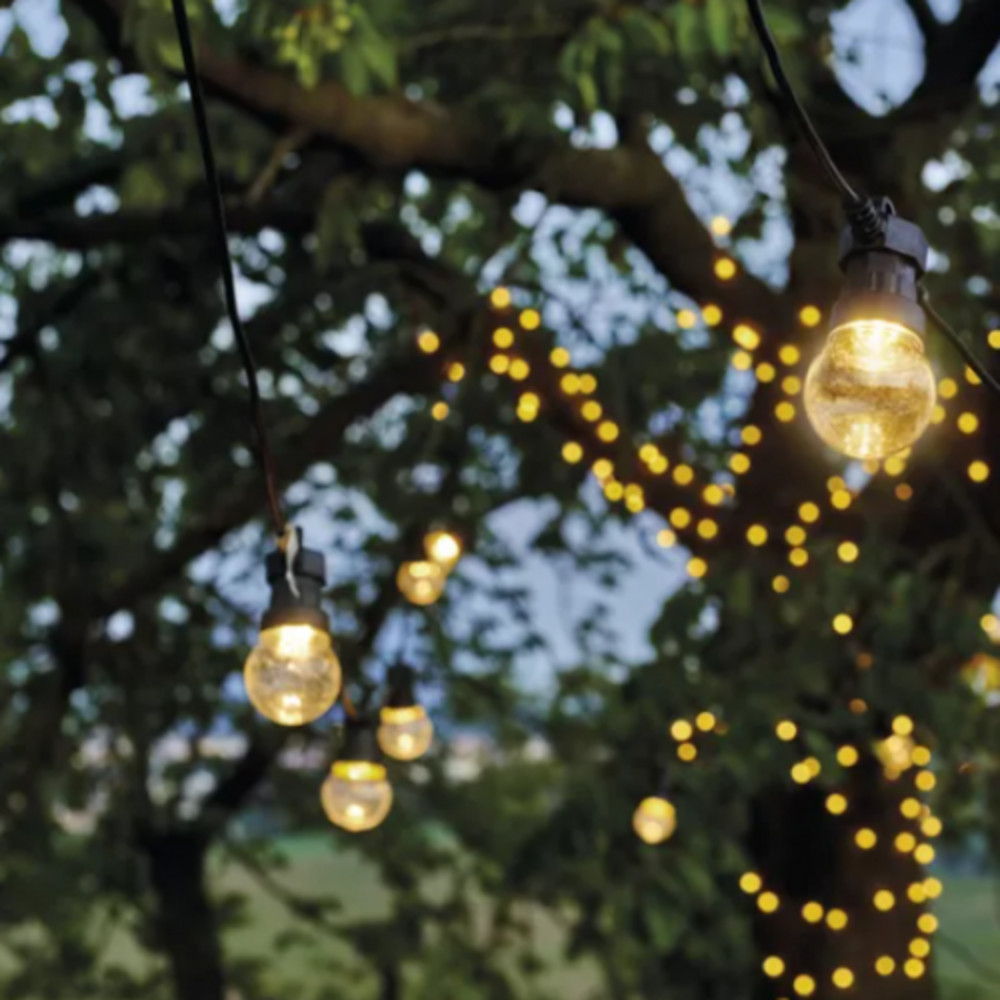 A kültéri fényfüzérek a nyári esték kedvelt dekorációs eleme, amelyeket használhatunk a teraszon, a kertben.
