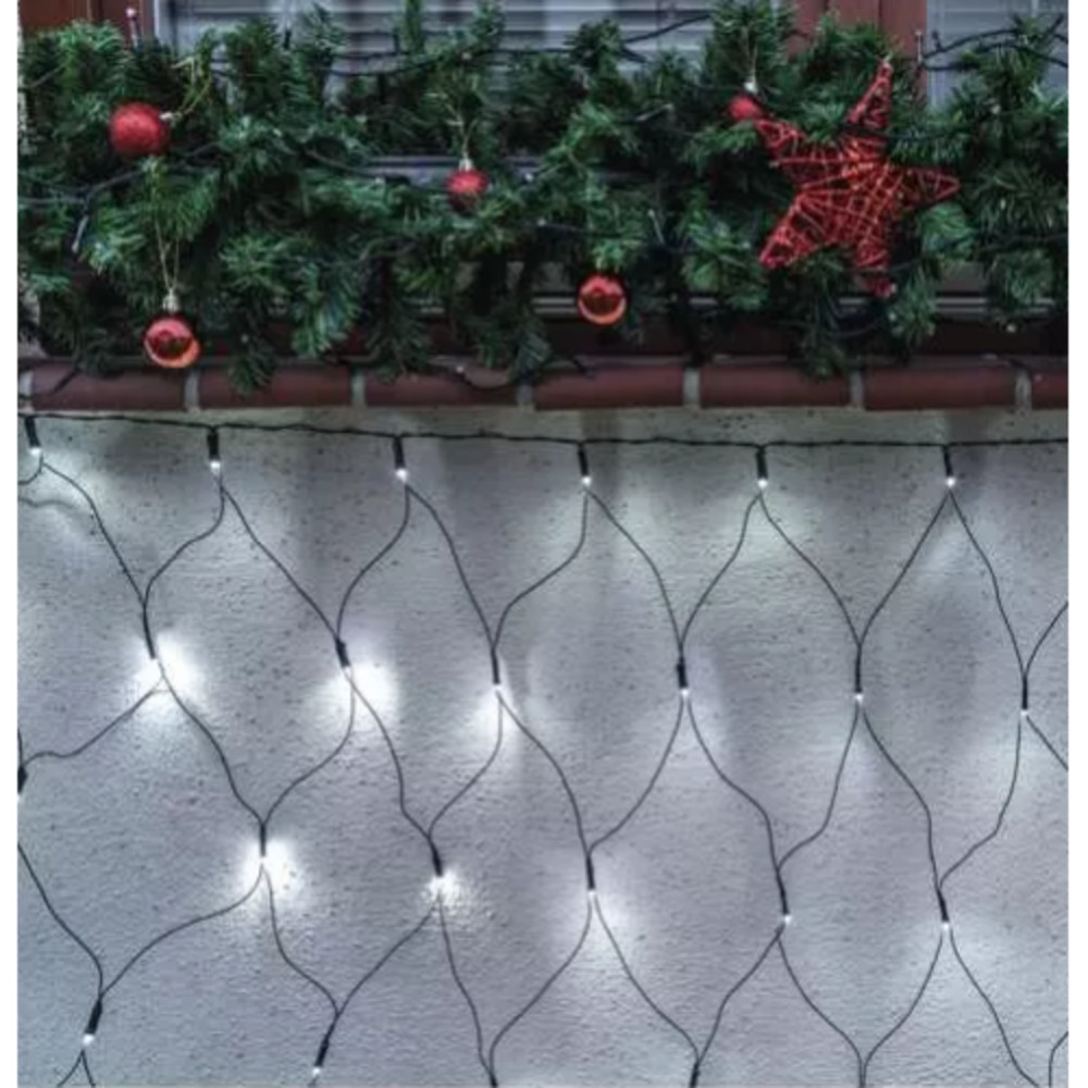 Led fényfüggöny , háló , sorolható , beltéri/ kültéri , 160 led , 1.5 x 2 m , hideg fehér , időzíthető , IP44 , standard