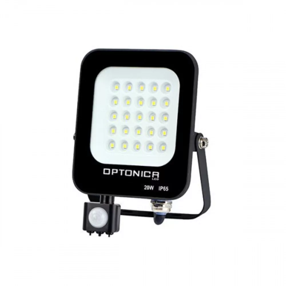 LED reflektor , 20 Watt , Ultra Slim , SMD , mozgásérzékelős , meleg fehér , fekete ház , IP65 , Optonica