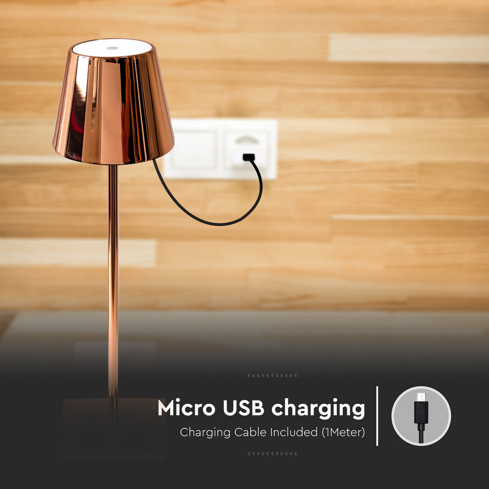Újratölthető asztali lámpa, 3w, 3000K, meleg fehér, 80lm, 180°, arany, dimmelhető, V-TAC, 2883