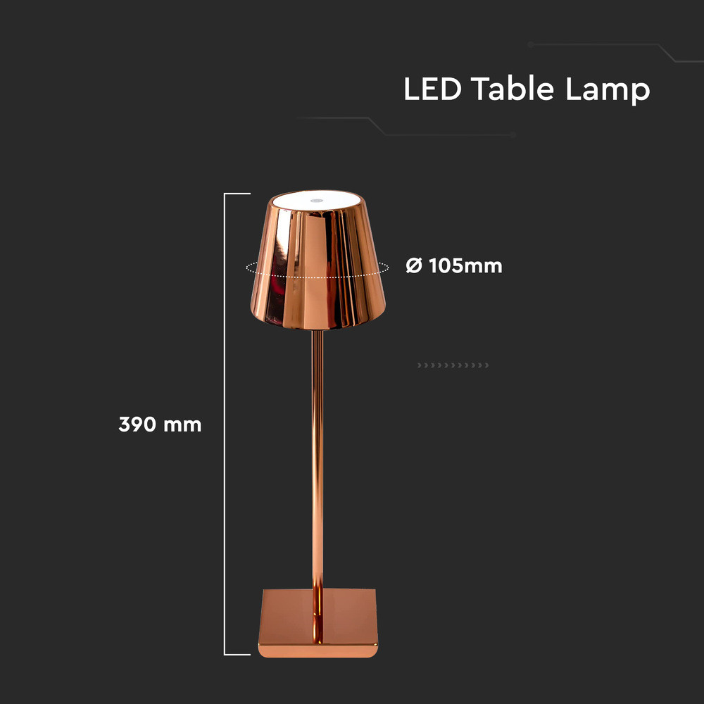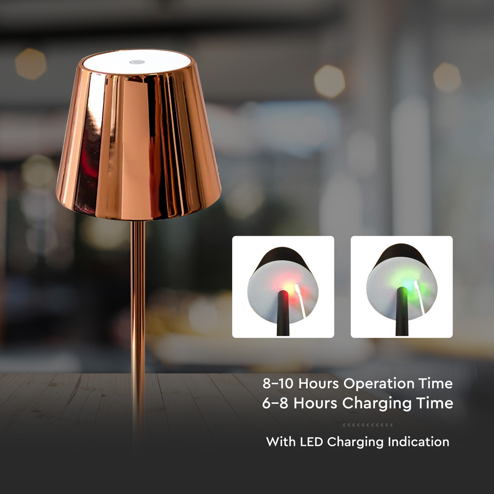 Újratölthető asztali lámpa, 3w, 4000K, természetes fehér, 90lm, 180°, arany, dimmelhető, V-TAC, 2884
