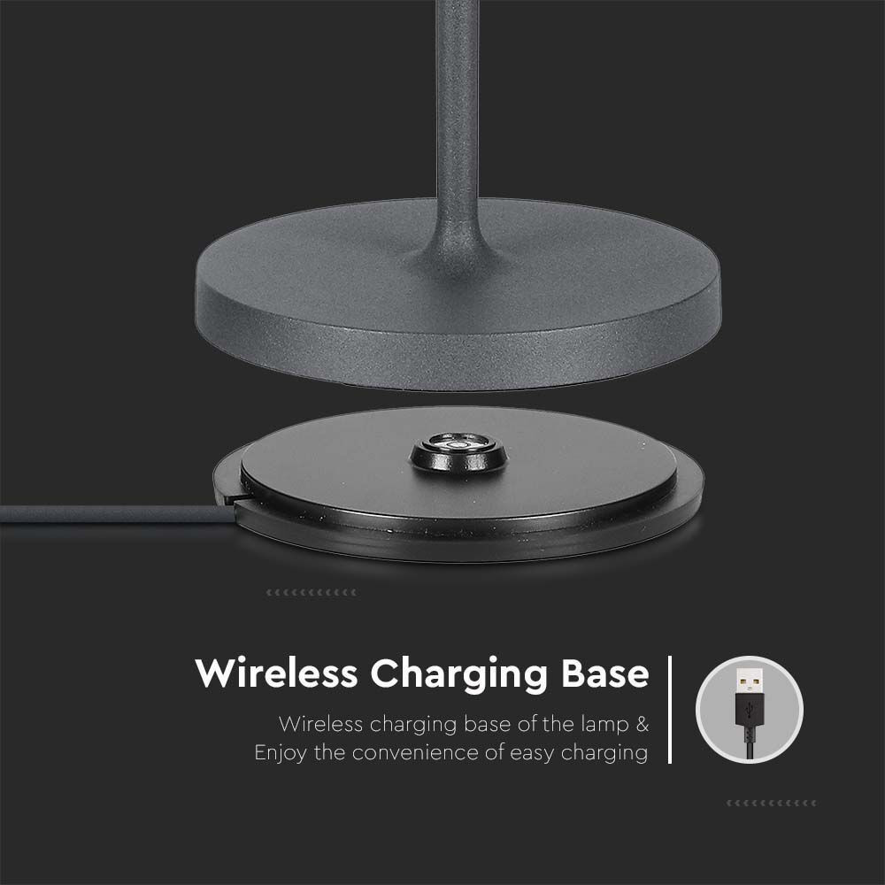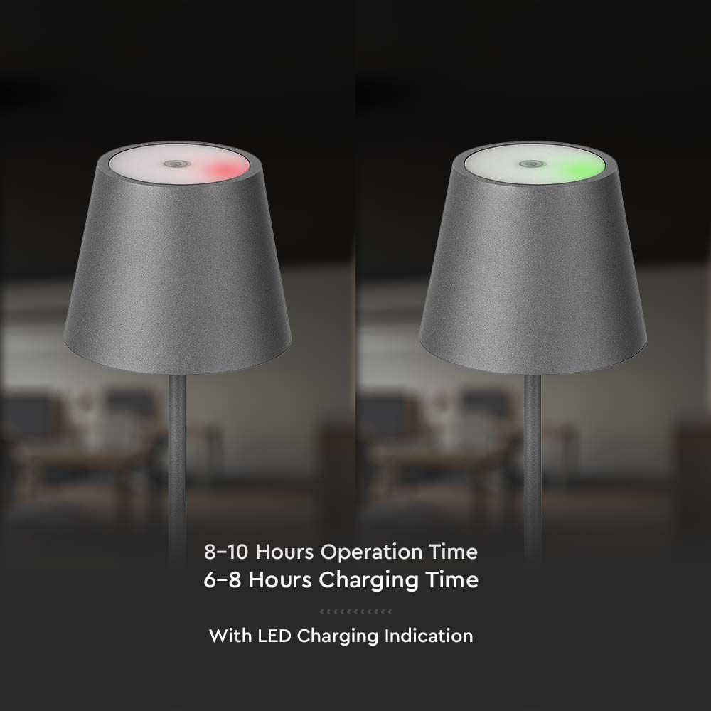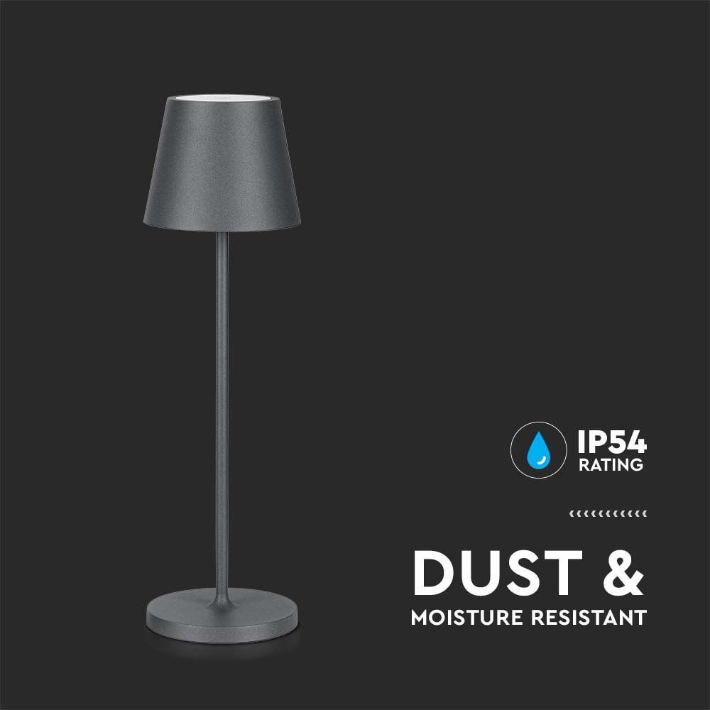 Újratölthető asztali lámpa, 2w, 3000K, meleg fehér, 200lm, 180°, szürke, dimmelhető, IP54, V-TAC, 7653