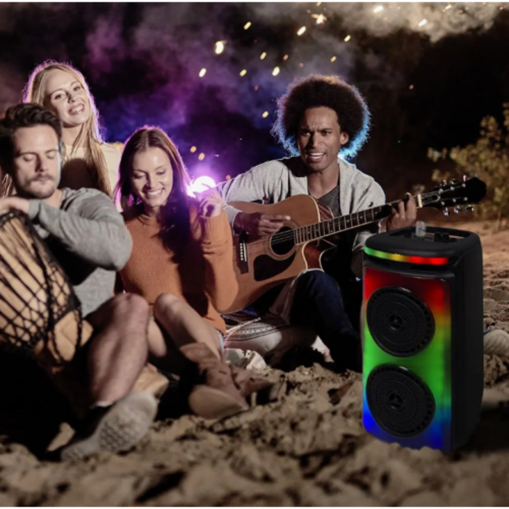Vezeték nélküli USB-ről tölthető, Bluetooth hangszóró, amely beépített RGB (színes) világítási funkciójának, valamint a tartozék mikrofonnak köszönhetően tökéletes parti kellék lehet. Hordozhatósága és kompakt mérete lehetővé teszi, hogy bárhova magunkkal vihetjük, így otthon, akár a kertben, sátrazás, utazás, nyaralás közben is használható.