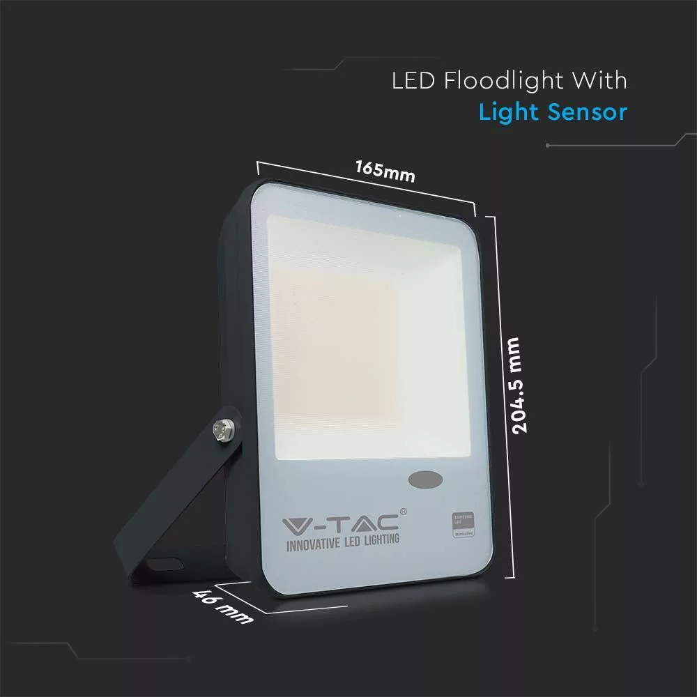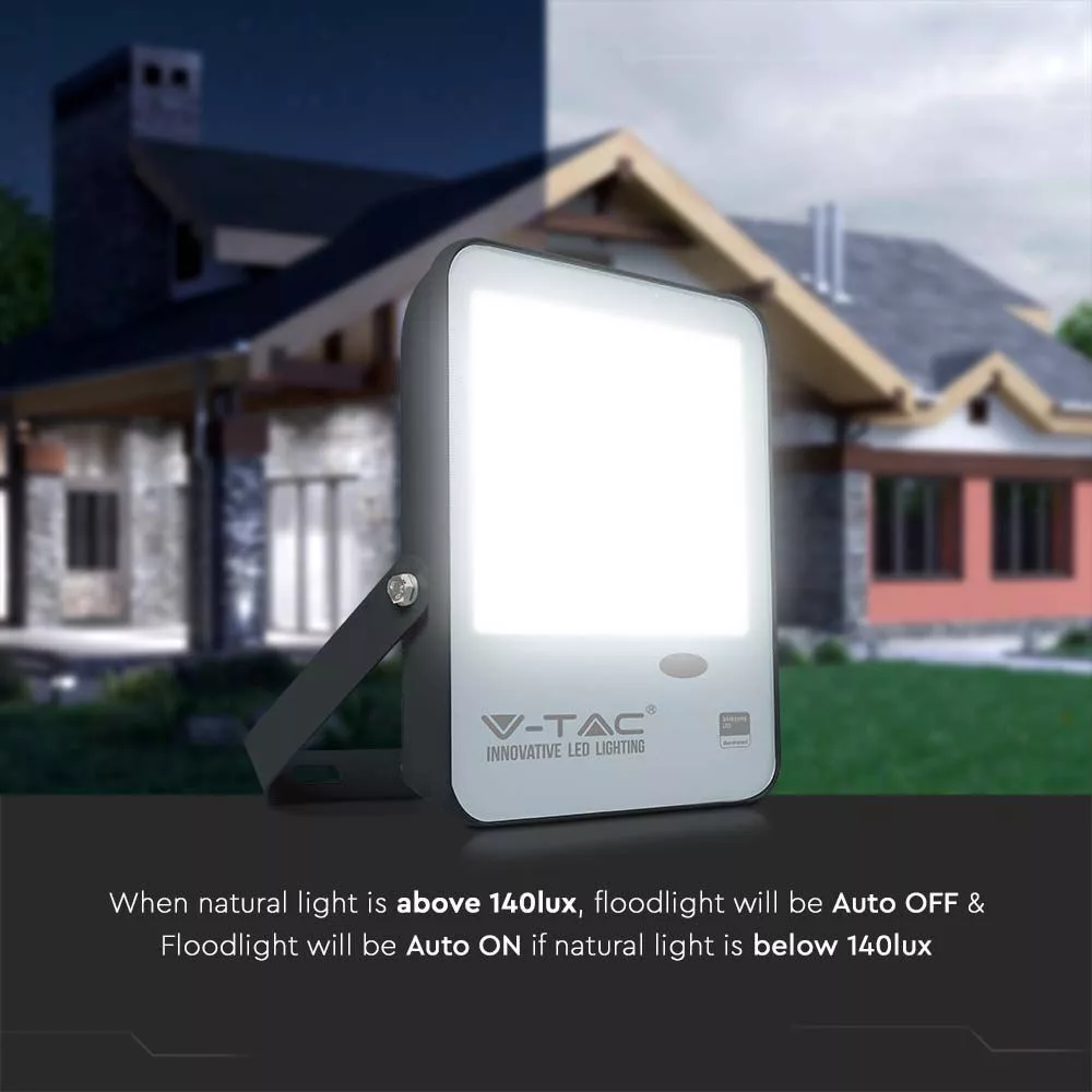 LED reflektor szenzoros reflektor Fotocellás érzékelős PRO, 30w, 4000K, természetes fehér, 3000lm, 100°, fekete, CRI>80, IP65, V-TAC, 20170