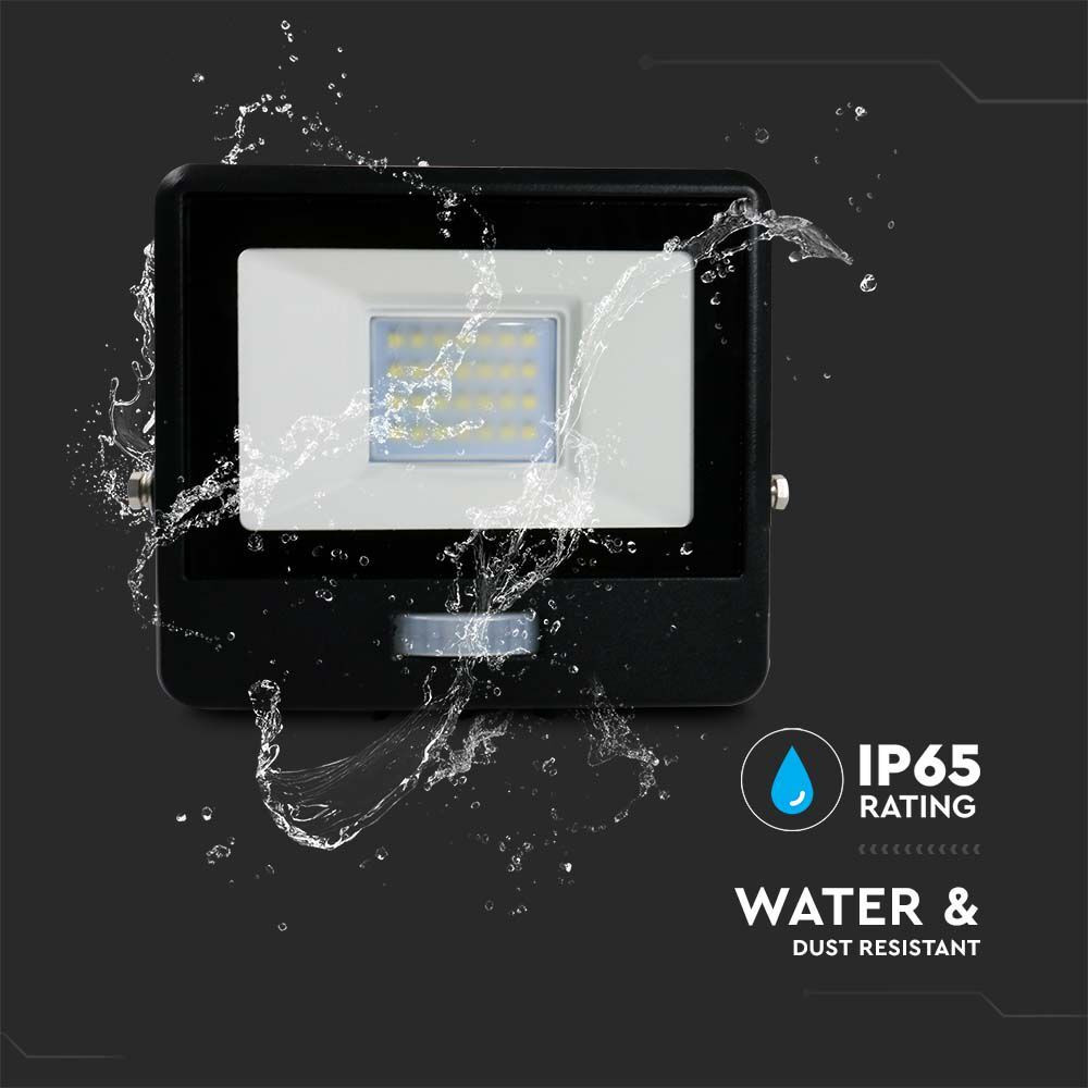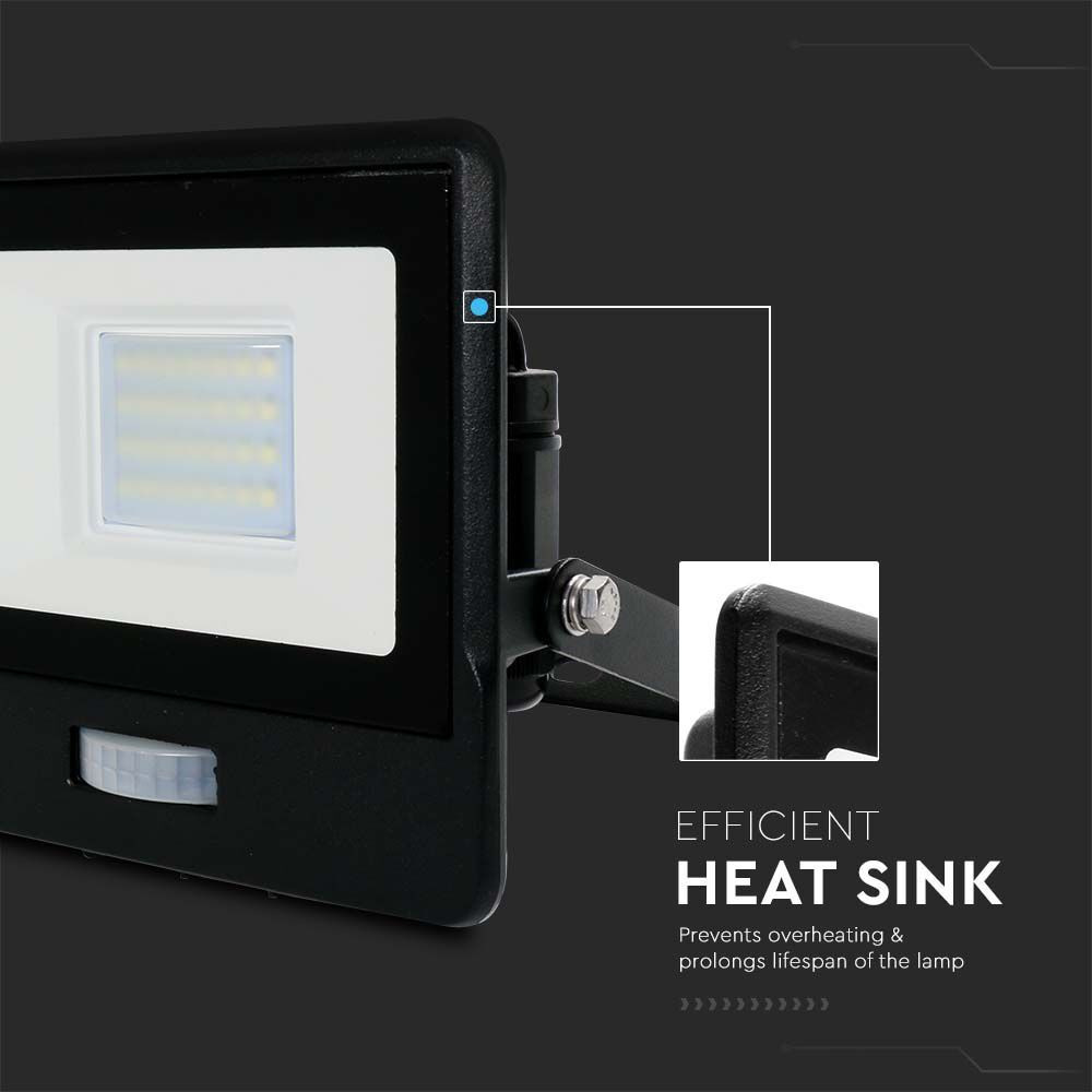 LED reflektor PIR érzékelős PRO, 20w, 3000K, meleg fehér, 1510lm, 100°, fekete, CRI>80, IP65, V-TAC, 20259