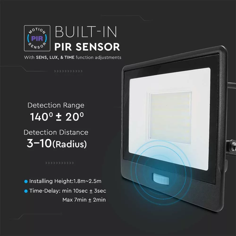 VT-158S-1 50W Pir Érzékelős Reflektor Samsung Chippel És 1M Kábellel 4000K Fekete Testtel