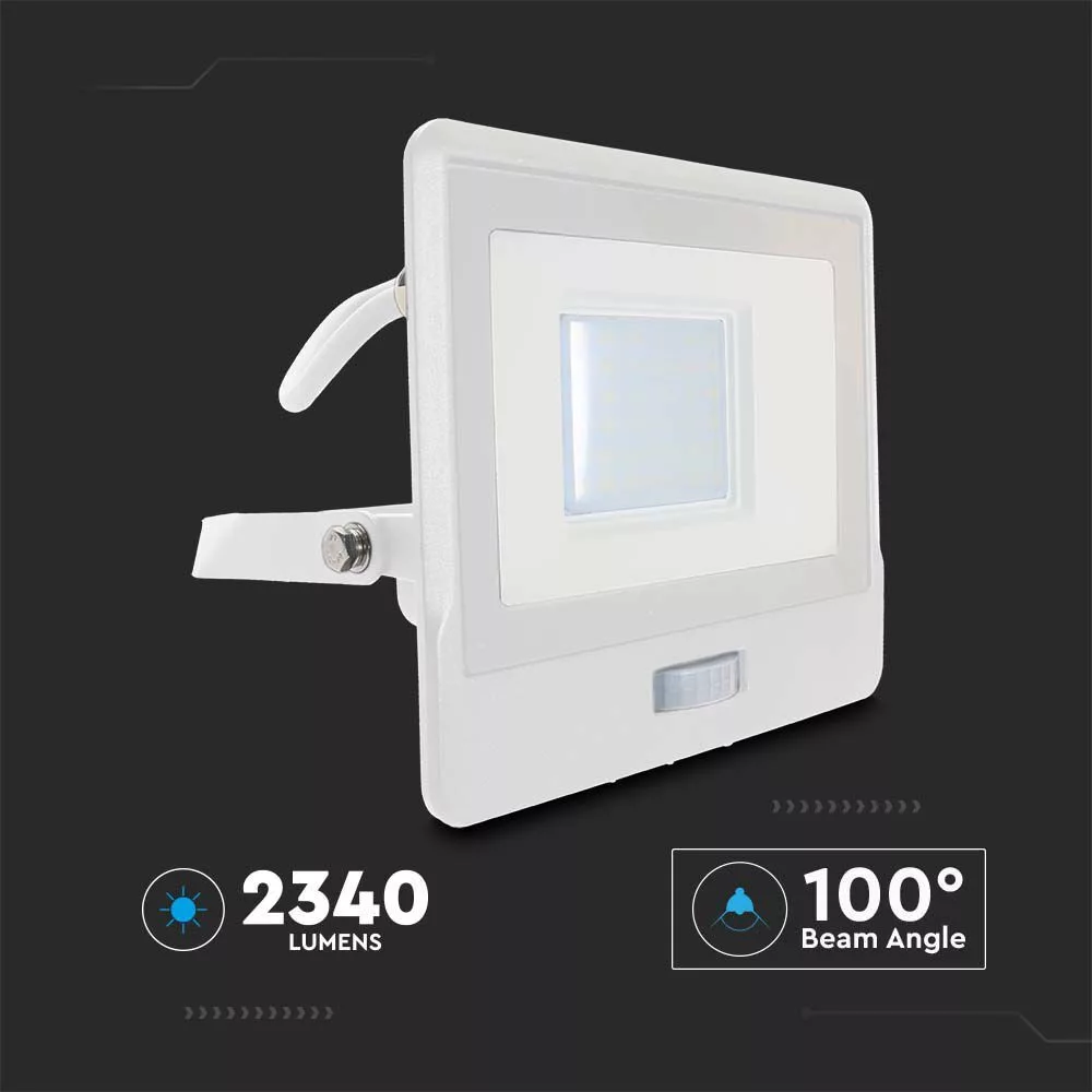 VT-138S-1 30W Pir Érzékelős Reflektor Samsung Chippel És 1M Kábellel, 6500K Fehér Testtel