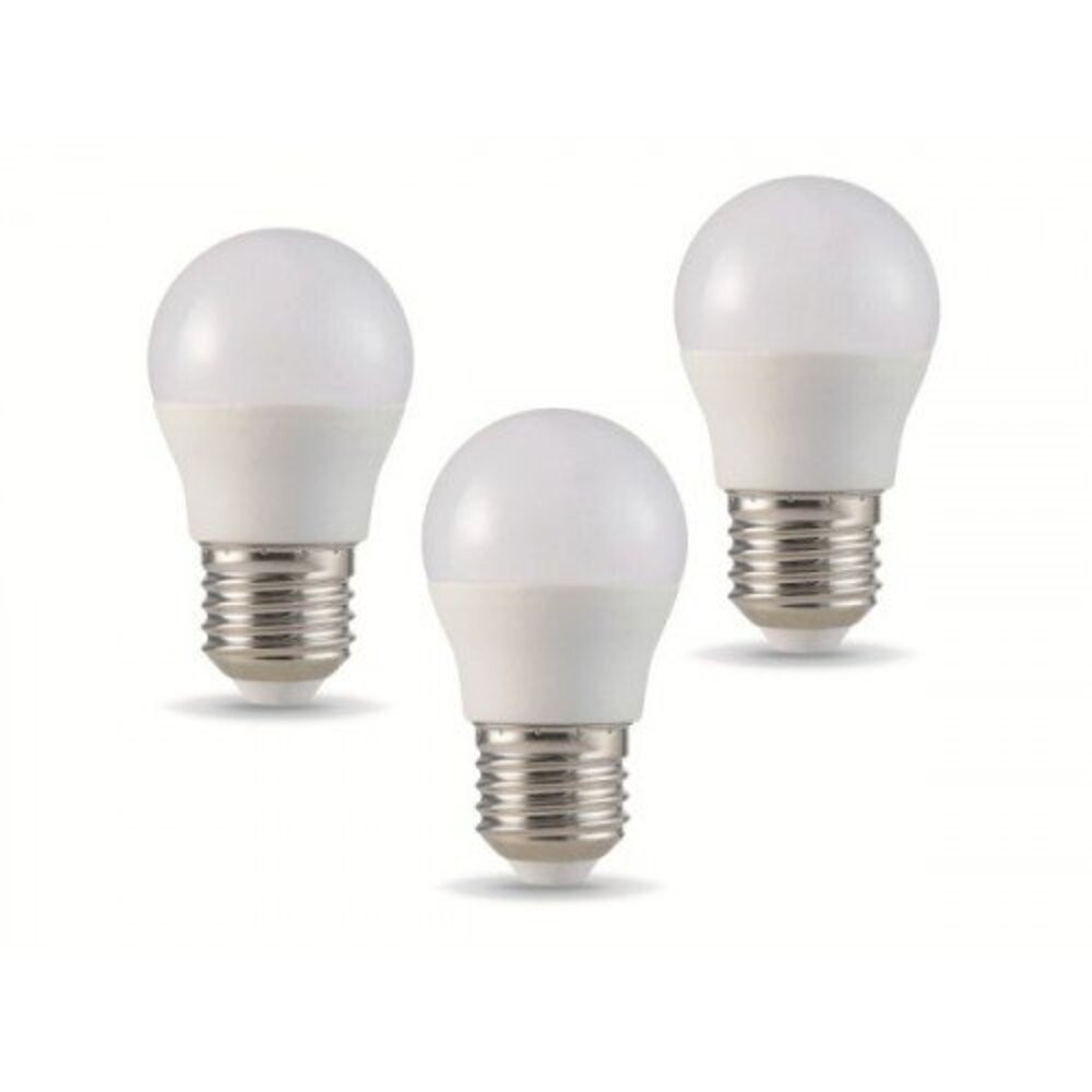 LED lámpa , égő , kis gömb , E27 foglalat , 4.5 Watt , meleg fehér , 3 darabos csomag