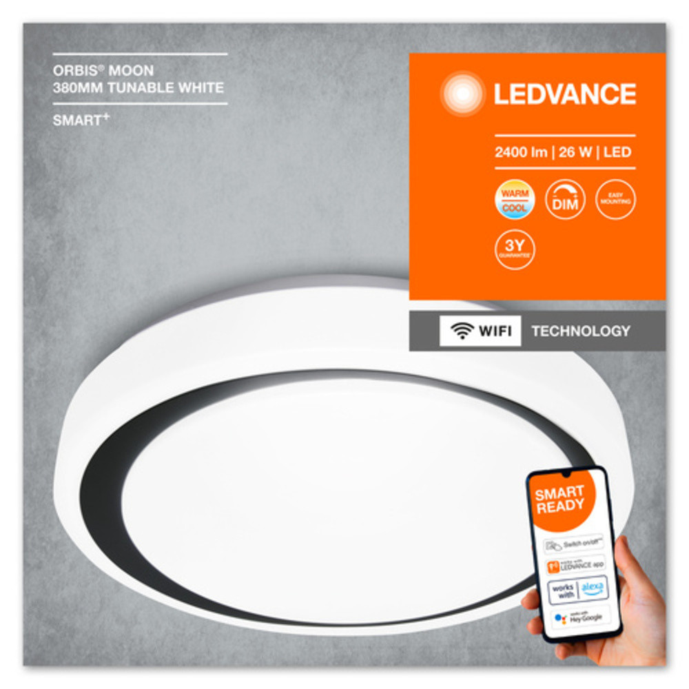 Ledvance Smart+ WIFI intelligens mennyezeti LED lámpa, állítható színhőmérséklettel, 24 W, 38 cm, fehér-fekete színben (Orbis)
